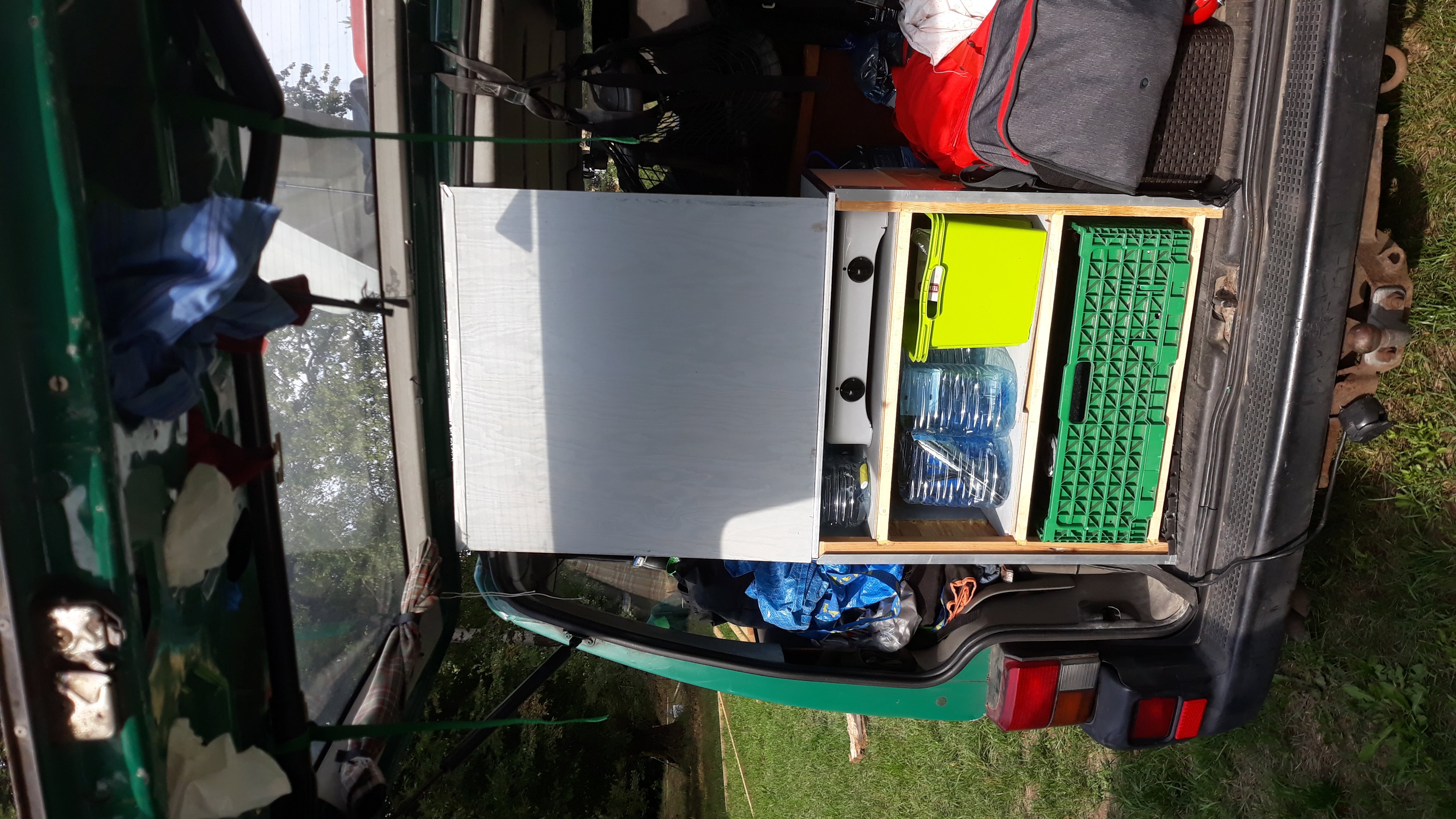 Na dolnej skrzynka na gary i jednocześnie ociekacz (ładuje się mokre gary do wyjmowanej plastikowej skrzynki i wsuwa się ją z do boxu gdzie sobie schną)