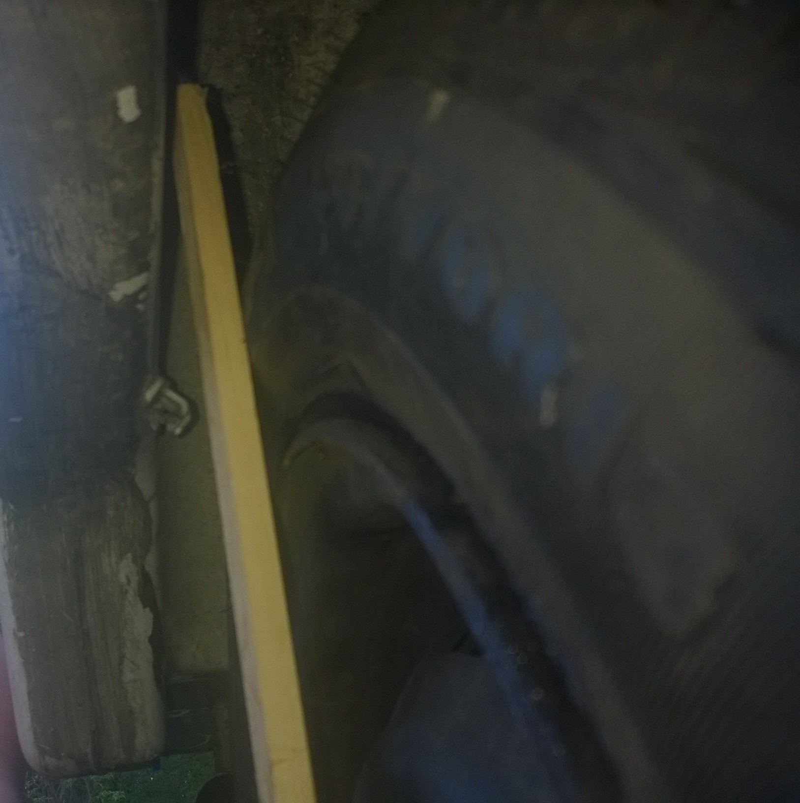 Jak widać, różnica jest i ta różnica mnie wystraszyła. Załączam fotki jak to wygląda - brzeg opony na fotkach jest wyznaczony przez listewkę o grubości 9mm, nie wiem czy na tych fotkach cokolwiek zobaczycie bo ciężko sensownie telefonem zrobić tam zdjęcia. Pierwsze zdjęcie to lewe koło, drugie - prawe.