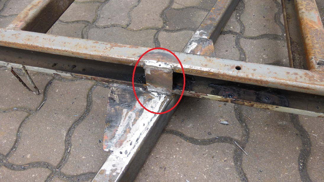 Warto też dospawać elementy zamykające na odcinku "przy dyszlu" poprzeczny ceownik ramy. Chodzi o to żeby nie pracowała tylko dolna część profilu "C" a całość. Podobnie w tylnej części dyszla i przy podporach. Chodzi o to: