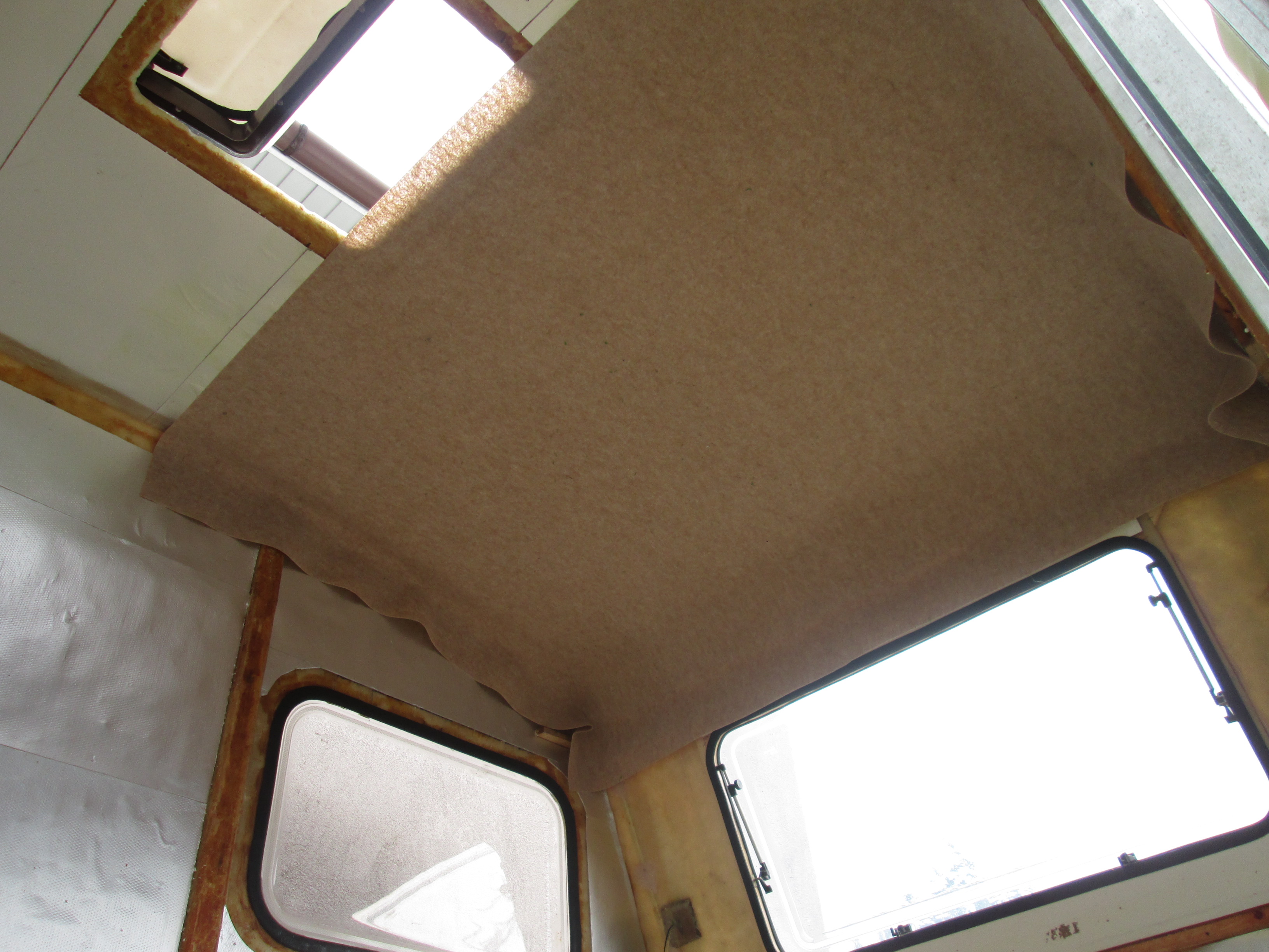 i wg niej rozpocząć klejenie ponieważ dach nie jest płaski to myślę że nad szafą ubraniową potrzebne cięcie poprzeczne , aby wykładzina się ułożyła na kszywiznie dachu , ja składałem płytę z dwóch części i gimnastykowałem się z kształtem łuku poprzecznego i wzdłużnego