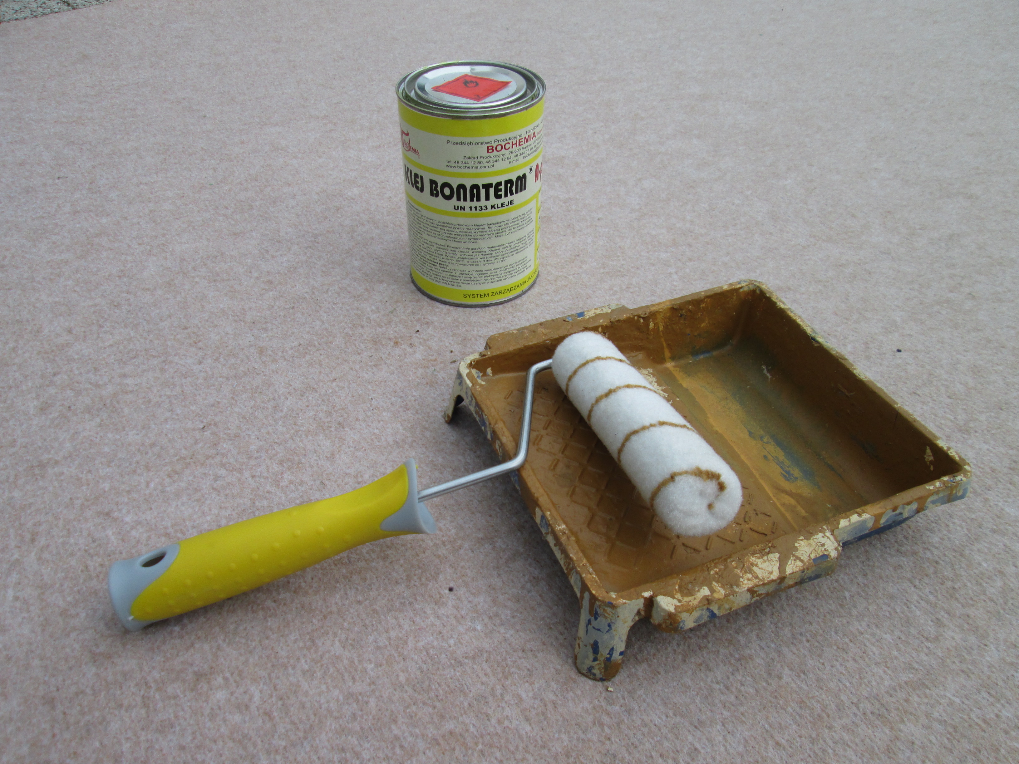 Klej po przeprowadzonych doświadczeniach będę nakładał chyba wałkiem co by szybko sufit i wykładzinę przesmarować Bonatermem A Plus.