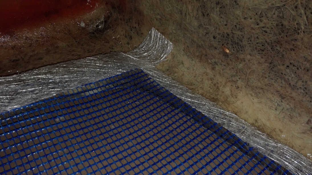 Jako podstawowy budulec ścian posłużyła ta najbardziej gęsta mata widoczna na spodzie. Bardzo ciężko się ją przesącza ale za to laminat jest niesamowicie nią zbrojony.