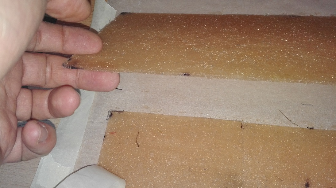 W dalszej kolejności wykonałem dwie boczne ścianki ale tym razem robiąc je oddzielnie na samym papierze do pieczenia. Dałem po dwie warstwy maty.
