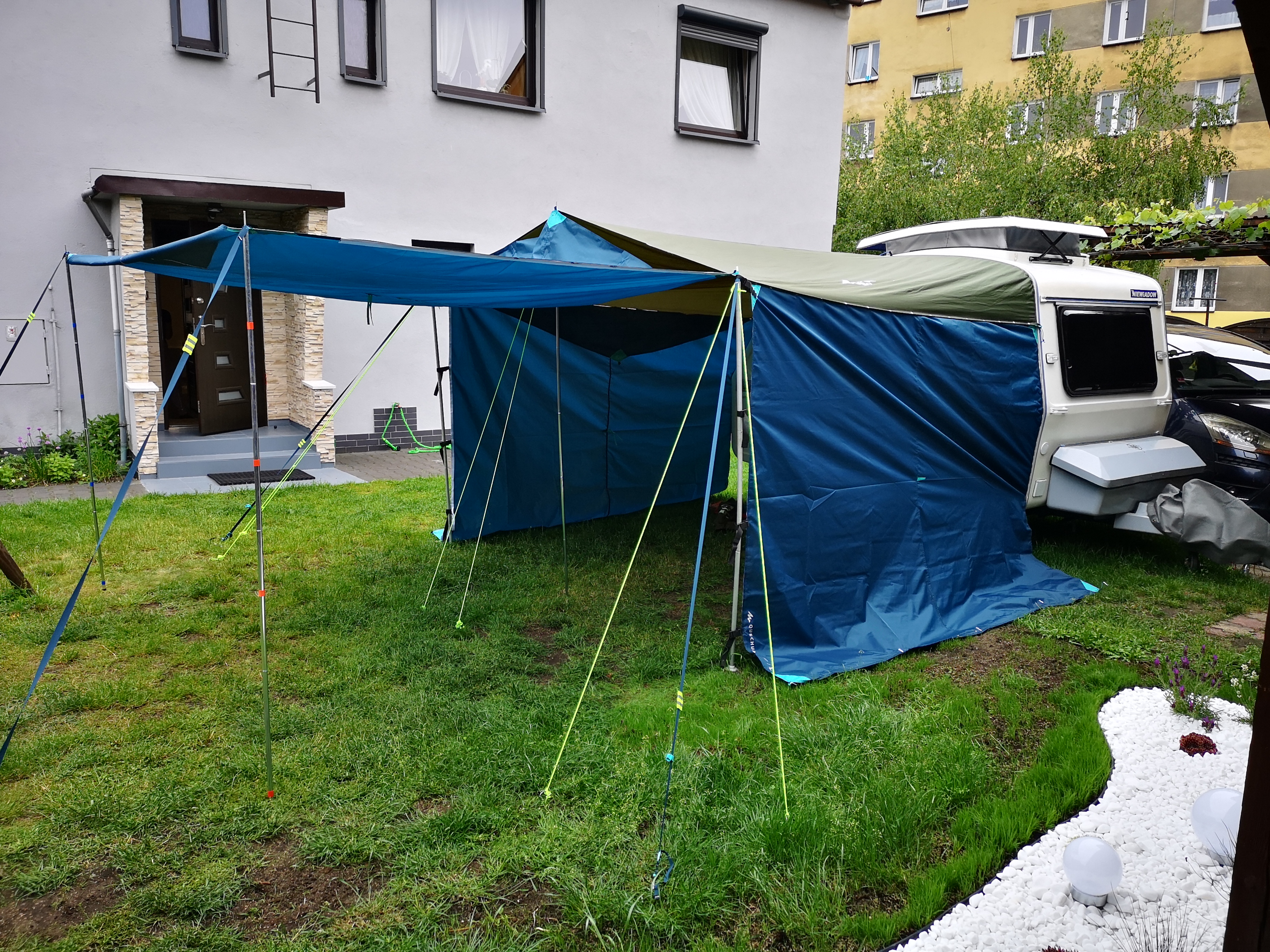 Fajnie. Ten patent od dawna chodził mi po głowie, jeszcze gdy jeździliśmy N-127. Myślałem o wożeniu dwóch "kołnierzy" dachu, jednego tradycyjnej moskitiery a drugiego w formie szczelnego materiału namiotowego. Ja tego nie zrealizowałem bo zmieniłem przyczepę ale od tamtej pory czasem nachodziła mnie taka myśl, dlaczego nikt się na takie rozwiązanie nie decyduje, skoro ogromnie poprawiłoby funkcjonowanie w przyczepie w czasie złej pogody, gdy więcej czasu spędzamy wewnątrz. Nawet ostatnio w Warce był ten temat poruszany.