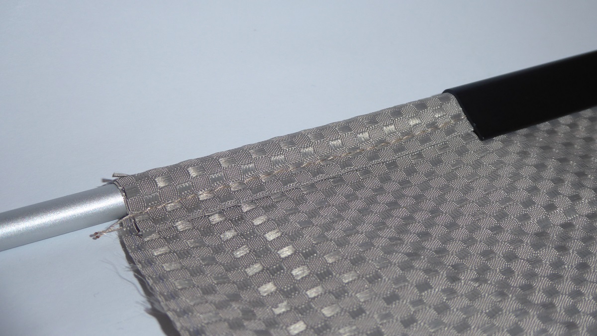 Materiał trzeba było tak zszyć aby wsunąć w powstały tunel ten pręt alu. Później na to trzeba nasunąć profil i jest to trudne zadanie bo po jakichś 20-30 cm nie idzie już łatwo, bardzo wzrasta opór. Przydał się młotek i jakoś poszło.