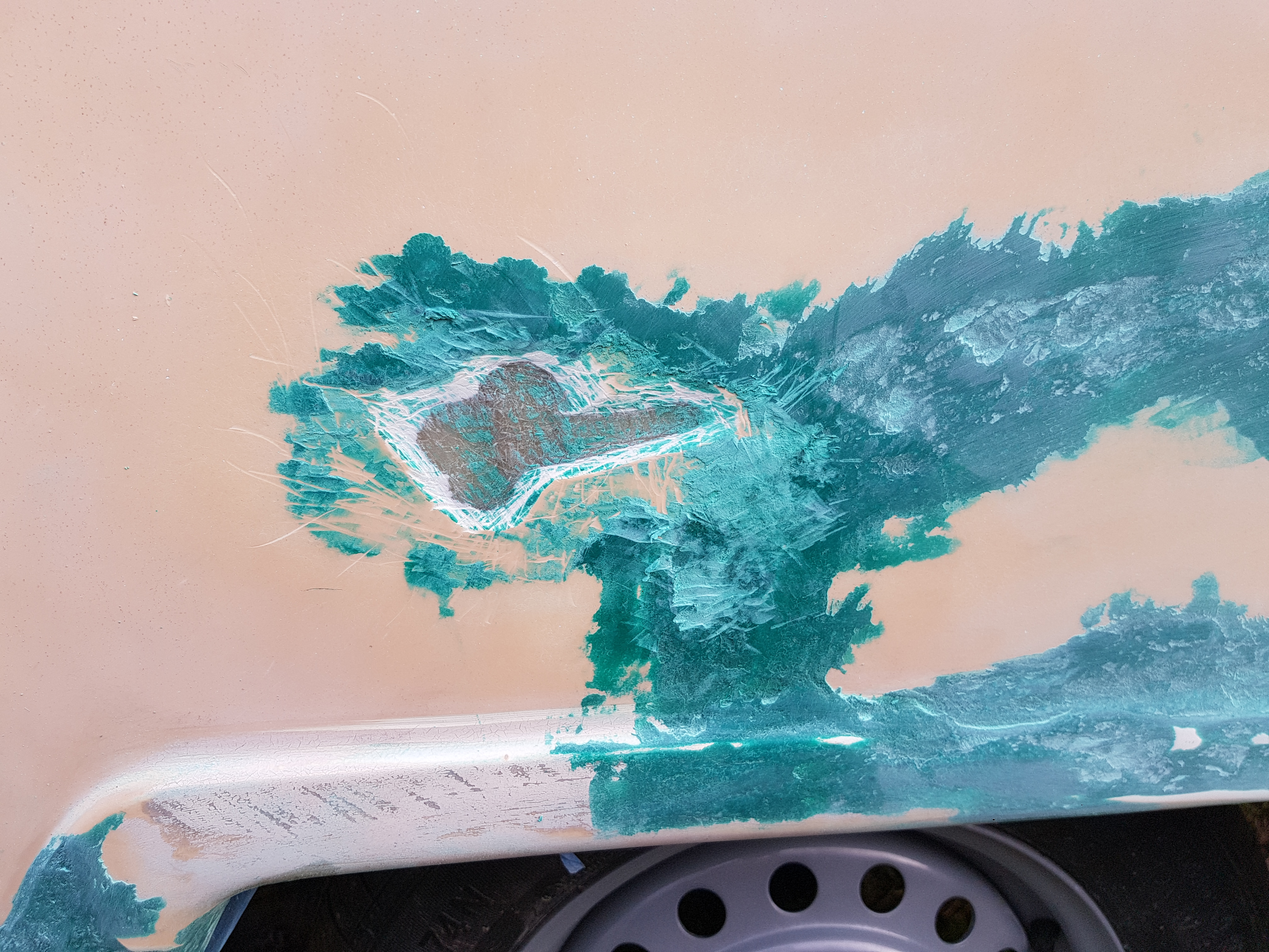Witam po zimowej przerwie. Wraz z ociepleniem klimatu ruszają prace przy campingu. A to przymiarki brodzika a to próby klejenia alufoxa i tapicerki no i oczywiscie dalsze szlifowanie zielonej szpachli Boll-a. Ale przecież nie może być tak łatwo i prosto. Serio nie rozumiem o co chodzi z tym zielonym wynalazkiem. Szpachla była kładziona przy temperaturach dodatnich na początku października jeszcze przy słoneczku. Wyrabiana według zaleceń producenta przy proporcjach podanych na opakowaniu przy użyciu wagi co do grama, miejsca kładzenia szpachli wyczyszczone i odtłuszczone i cholera w większości miejsc jest twarda jak skała i nadaje się do ścierania a w innych miejscach do tej pory ma konsystencję plasteliny, normalnie schodzi pod paznokciem. Czy ktoś z Szanownych Forumowiczów miał podobną sytuację albo wie o co tu może chodzić? Bo ja nie mam pojęcia i zaczynam grzecznie mówiąc sobie włosy wyrywać. Co teraz z tym dalej robić? Zacząłem to wydrapywać ale tak pół przyczepy drapać to woła o pomstę do nieba. Może znacie jakieś środki chemiczne żeby się tego pozbyć ale żeby mi laminatu z budy nie rozpuściło? Nie wiem, serio nie wiem co z tym fantem robić. Poniżej kilka zdjeć problemu z którym walczę. Pozdrawiam.