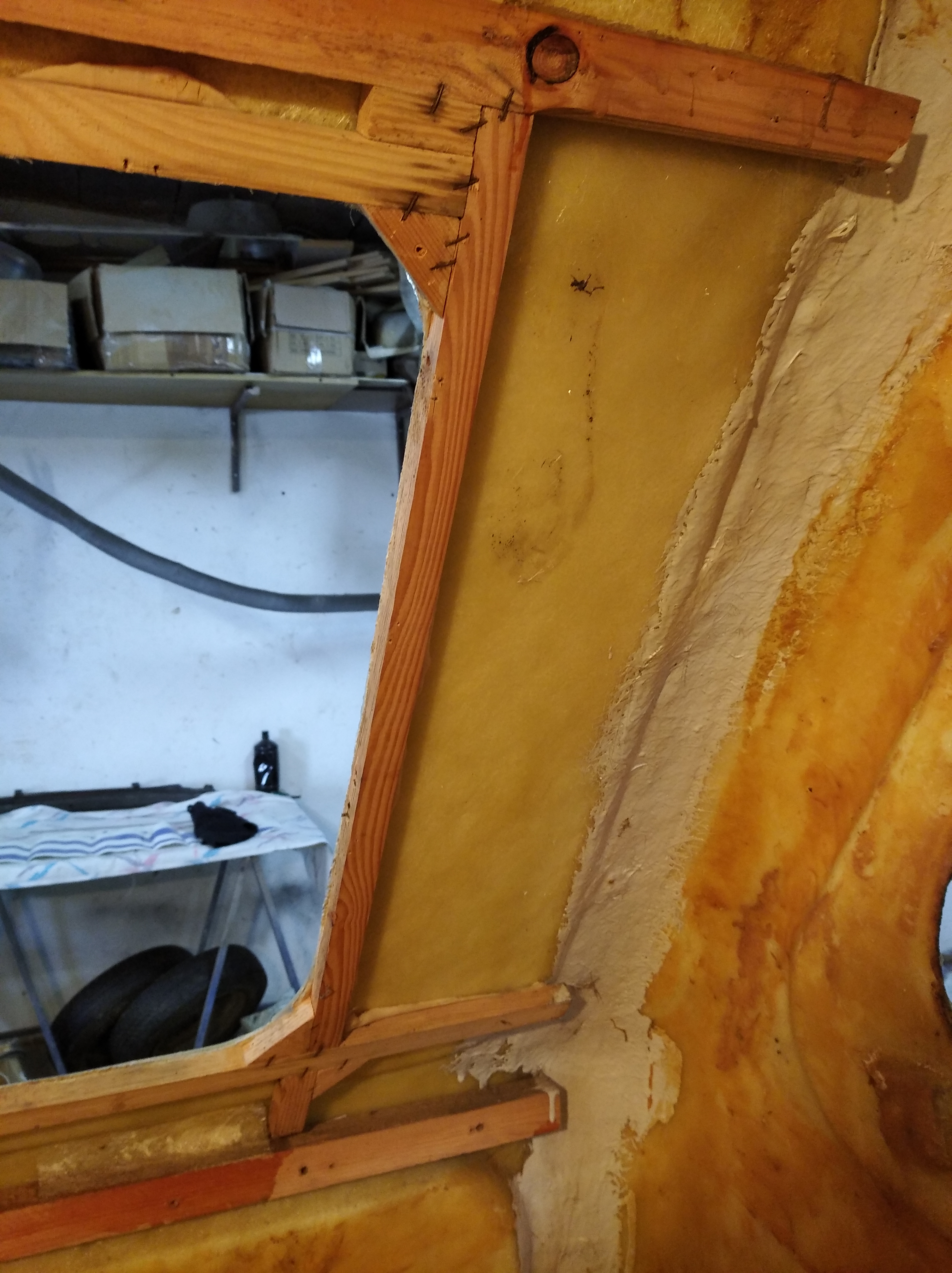 Ściany wyczyszczone z gąbki i luźnego kleju, przednia rama okna wymieniona, zeskrobany i wyczyszczony cały butyl oraz silikon spod uszczelek. Tak...silikon.
