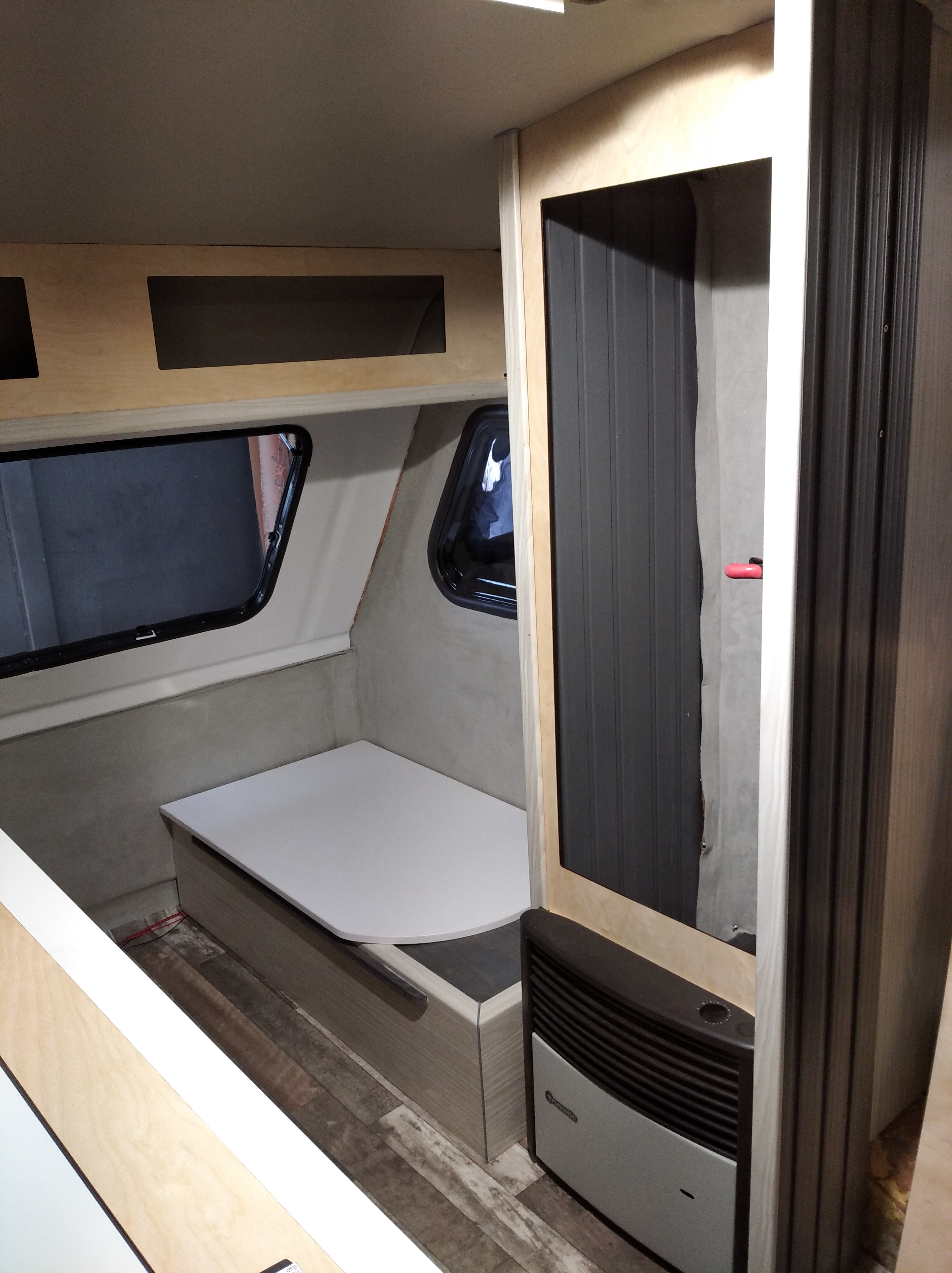 Pierwotnie chciałem stół do pozycji spania wspierać na szczytach bakist ale takie rozwiązanie wymusiło by podwyższenie pokryw do wysokości stołu wspartego na brzegach. Dodatkowe listwy i dość nieestetycznie by to wyglądało. Możnaby też zrezygnować z tego pomysłu i zaakceptować, że głowa i stopy śpią niżej