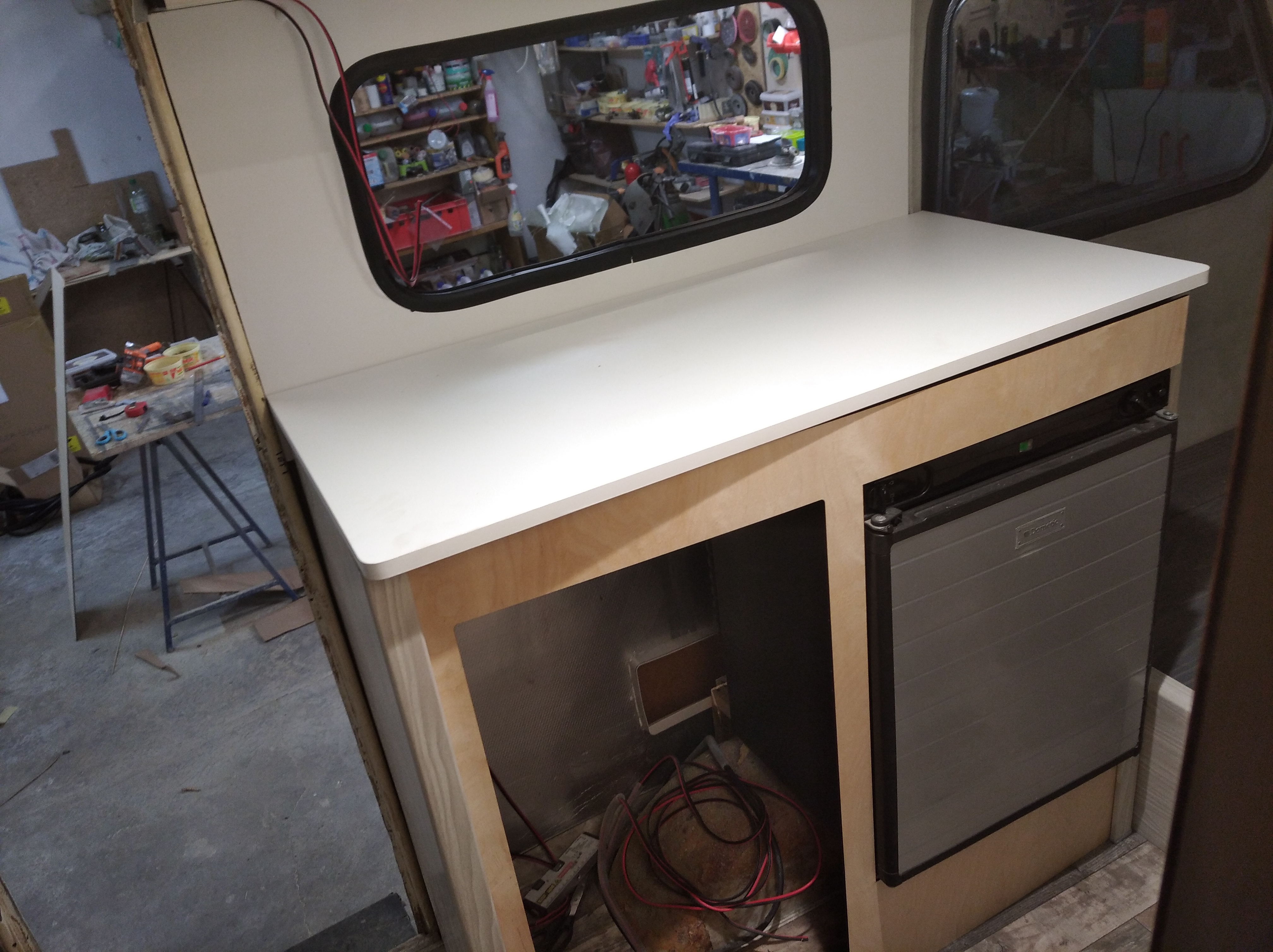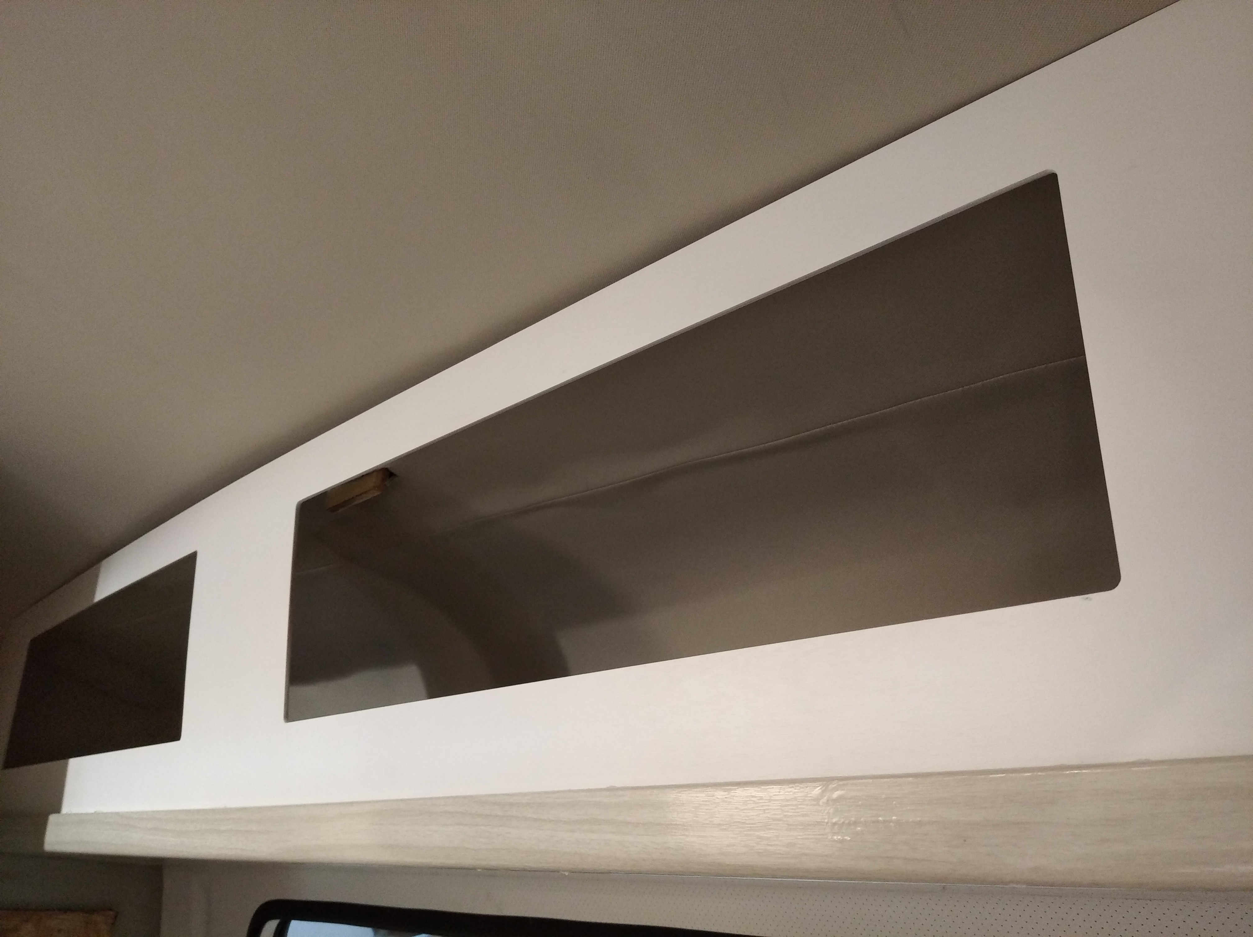 Zagwozdkę miałem z pawlaczem nad kuchnią, bo musiałem wymyślić dość specyficzne połączenie podłogi i ścianek bocznych. O ile spod był zaplanowany od początku z pcv to z bokami miałem dylemat bo łączenie kątowe parapetów jest w bardzo widocznym miejscu a zależało mi na estetyce. Rozważałem sklejkę 4 lub 12 mm i na to tapicerka ale jakoś tak...