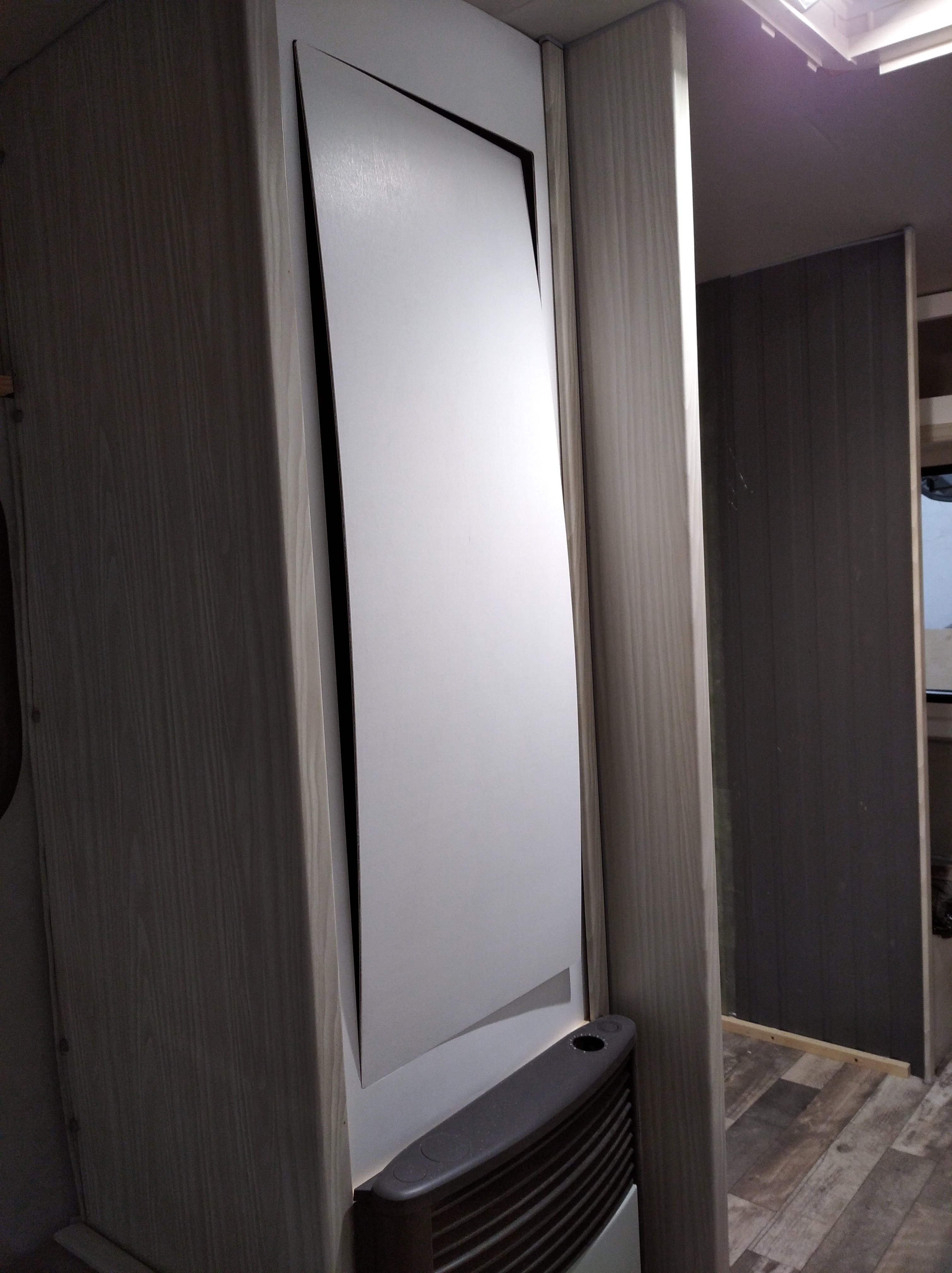 Na zdjęciu z szafą widać, jak sklejka pracuje pod wpływem wilgotnej farby. Potem wraca do swojego kształtu. Dlatego ramki z klejonego drewna muszą być, szczególnie przy takich powierzchniach jak szafa czy łazienka.