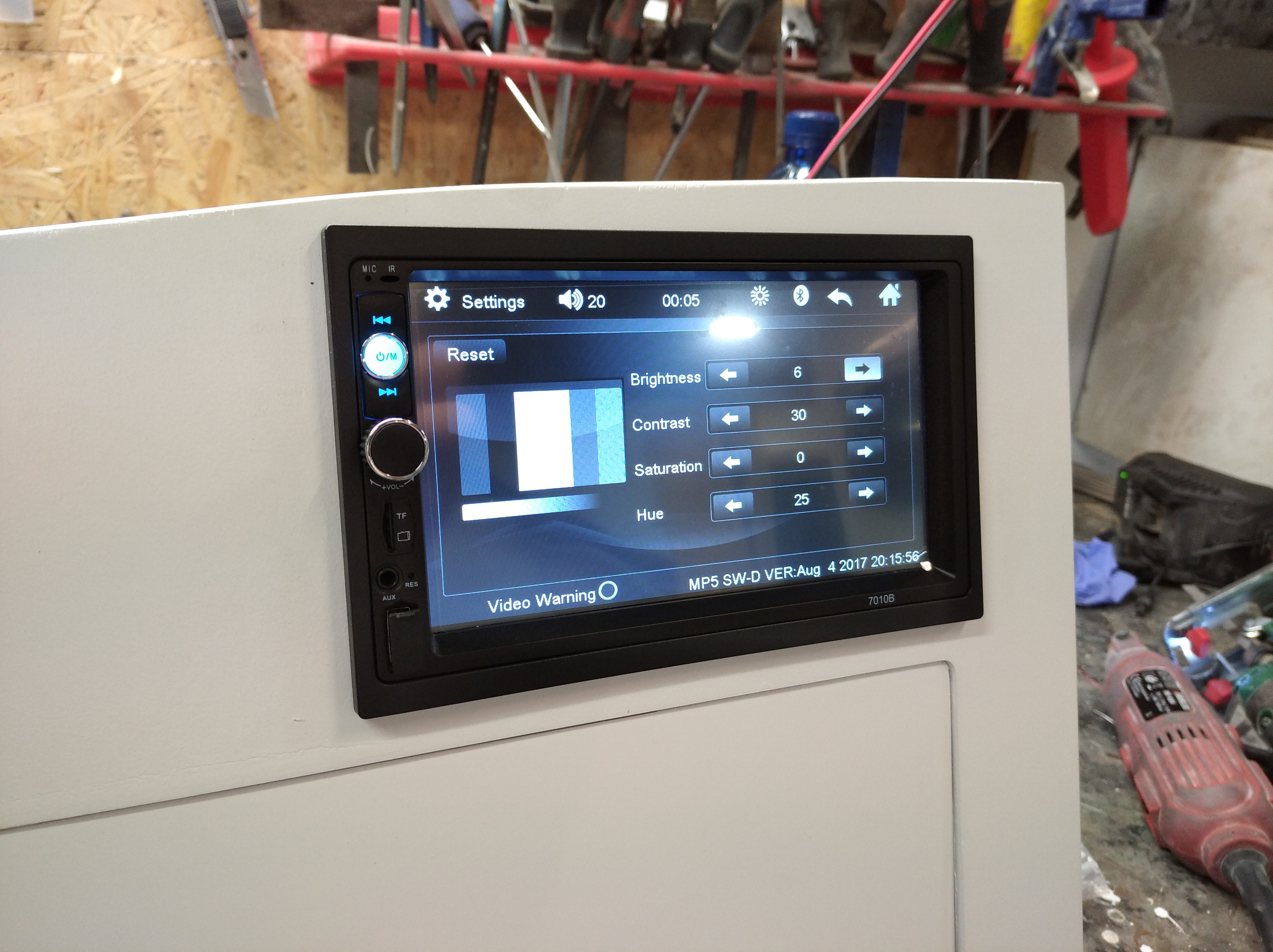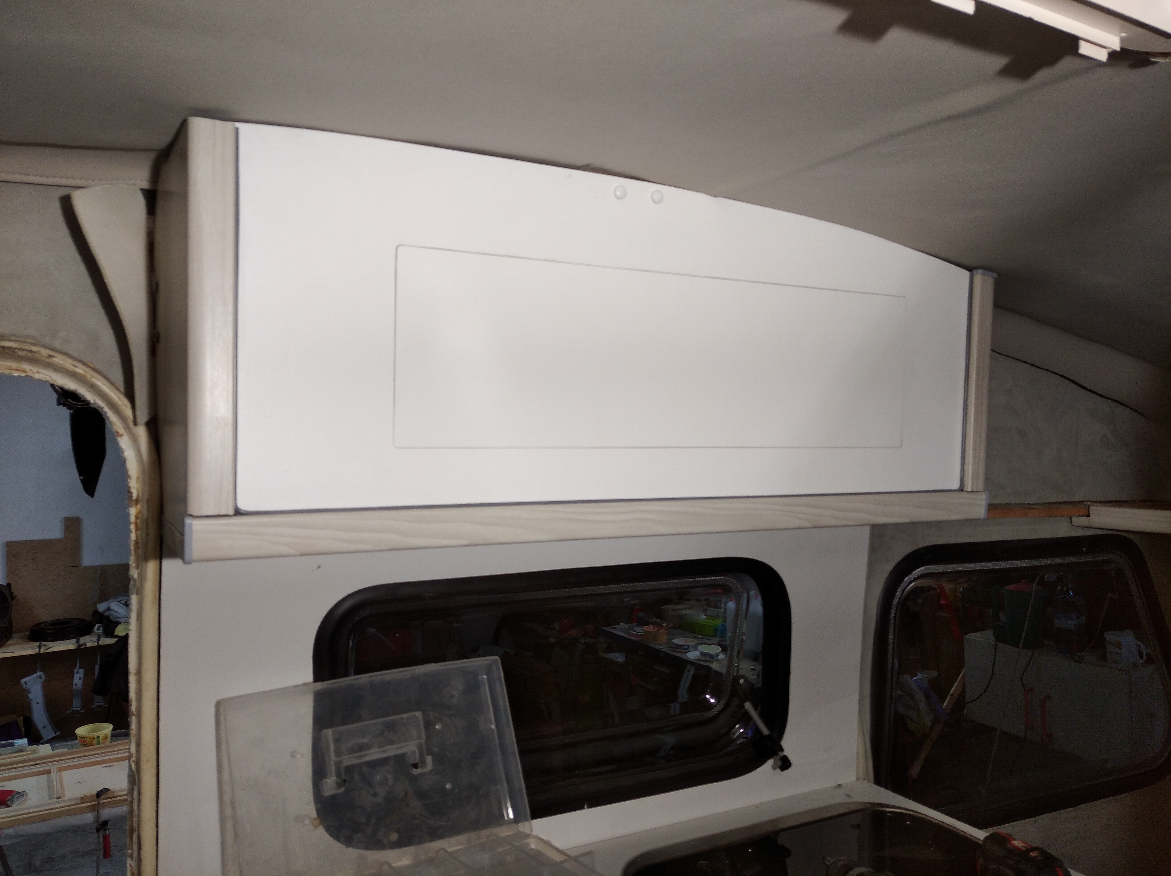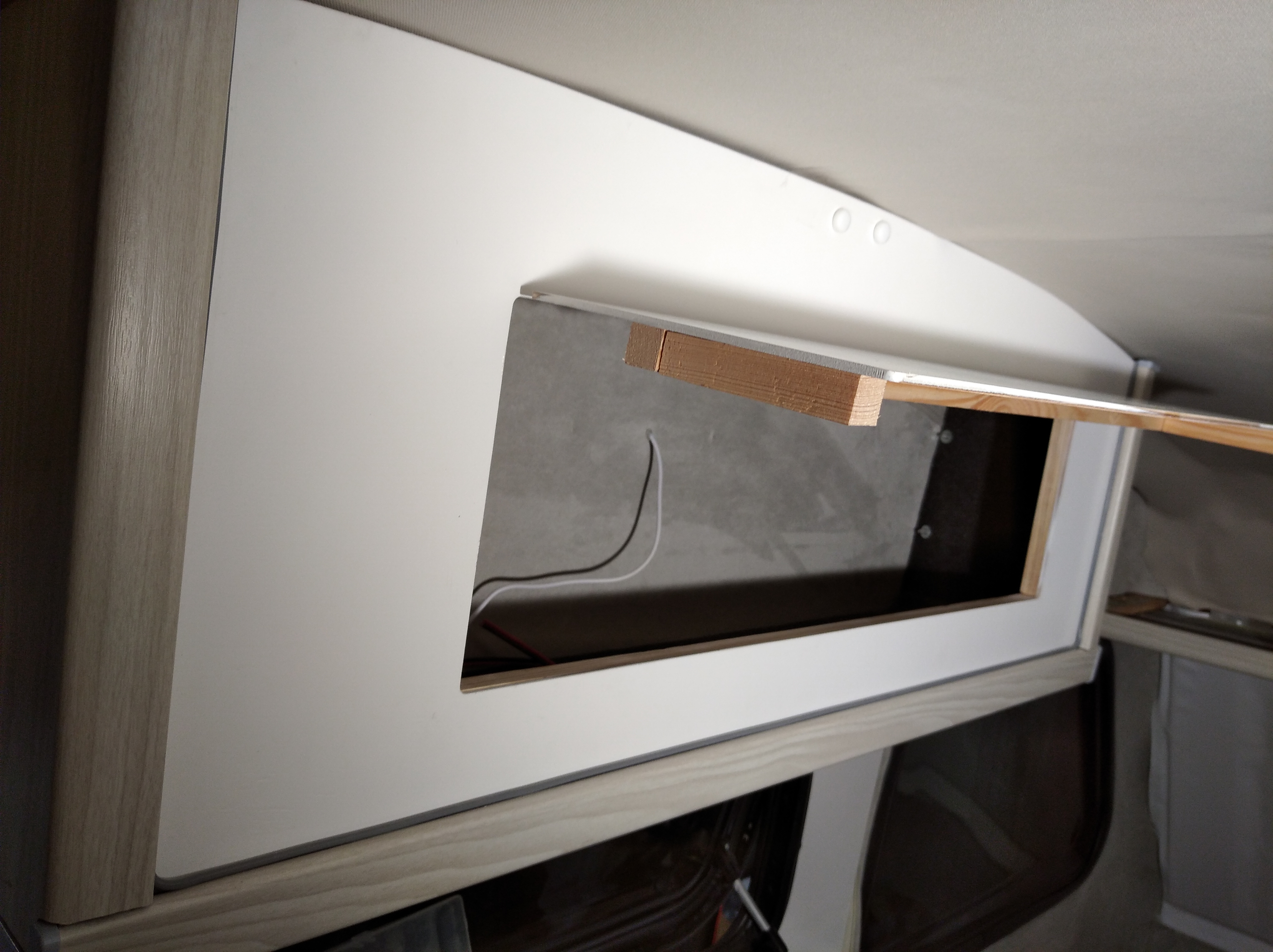 Kolejna sprawa zrobiona to szafa. Jeszcze bez półek bo sporo elektryki tam wpadnie ale zewnętrznie skończona. I radyjko od "majfrenda" zamontowane i sprawdzone. Lekkie, płytkie w montażu i najważniejsze, ma Bluetooth, na czym mi zależało.