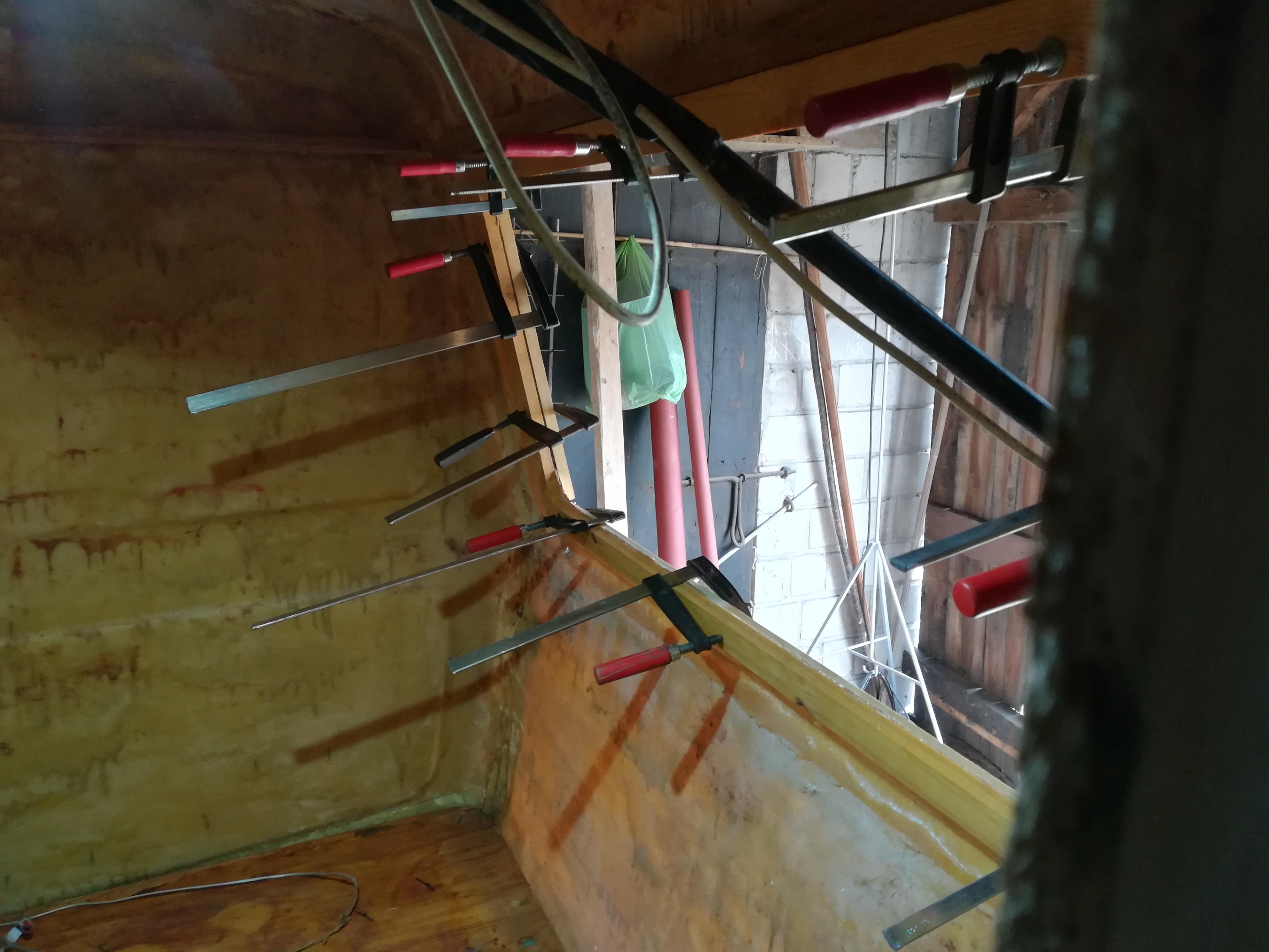 Pod podłogę dałem wcześniej wspomniane podkłady a w podłodze uzupełniłem kilka łat by sklejka sie usztywniła. od góry belki wzmocniłem żywicą poliestrową z matami z włókna. Wymienię też rączki manewrowe jak i rączki podnoszenia szyberdachu na już wcześniej przygotowane z aluminium. Listwy aluminiowe szlifowałem drucianką na wiertarce po czym trwało to o wiele krócej jak włókniną a efekt zadowalający - jak nowe szczotkowane aluminium. Z wnętrza uszczelek okiennych usunąłem pozostałości klejów i silikonów abym mógł je ponownie założyć. TO by było na tyle - reszta jak przyczepa wróci od lakiernika