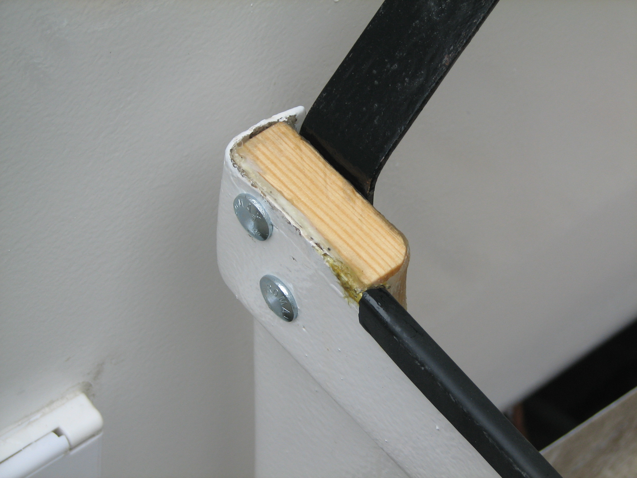 Zbliża się nieuchronnie zima, a więc dobrze by było udostępnić w końcu garaż stałemu mieszkańcowi, który na razie stoi grzecznie pod oknami. Pozbyłem się więc z garażu kufra na butle. Wylądował na swoim miejscu na dyszlu przyczepy. Krawędzie kufra i pokrywy okleiłem stosownymi gumami przy pomocy kleju Bonakol40. Pałąk mocujący pokrywę oczyściłem i pomalowałem czarnym Hameritem. Do kufra przykręciłem go zamkowymi śrubami M6.Do pokrywy przymocowałem listwę drewnianą 40x20mm wkręconymi przez listwę ozdobną wkrętami do drewna. Ponieważ poprzednia listwa zgniła nieco wokół wkrętów, pod listwę ozdobną podłożyłem taśmę butylową. Mam nadzieję, że nawinięty na wkręty podczas wkręcania butyl ochroni listwę przed działaniem wody. Nowa listwa przed przykręceniem została w celu impregnacji dwukrotnie pociągnięta pokostem lnianym.Wspornik pokrywy pozostał oryginalny, tylko został pocynkowany. Klocki, do których jest przykręcony, okazały się nie pognite, więc pozostały te same. Podobnie, jak klocek zaczepu zamka.Oba zaczepy zamka również zaliczyły cynkowanie.