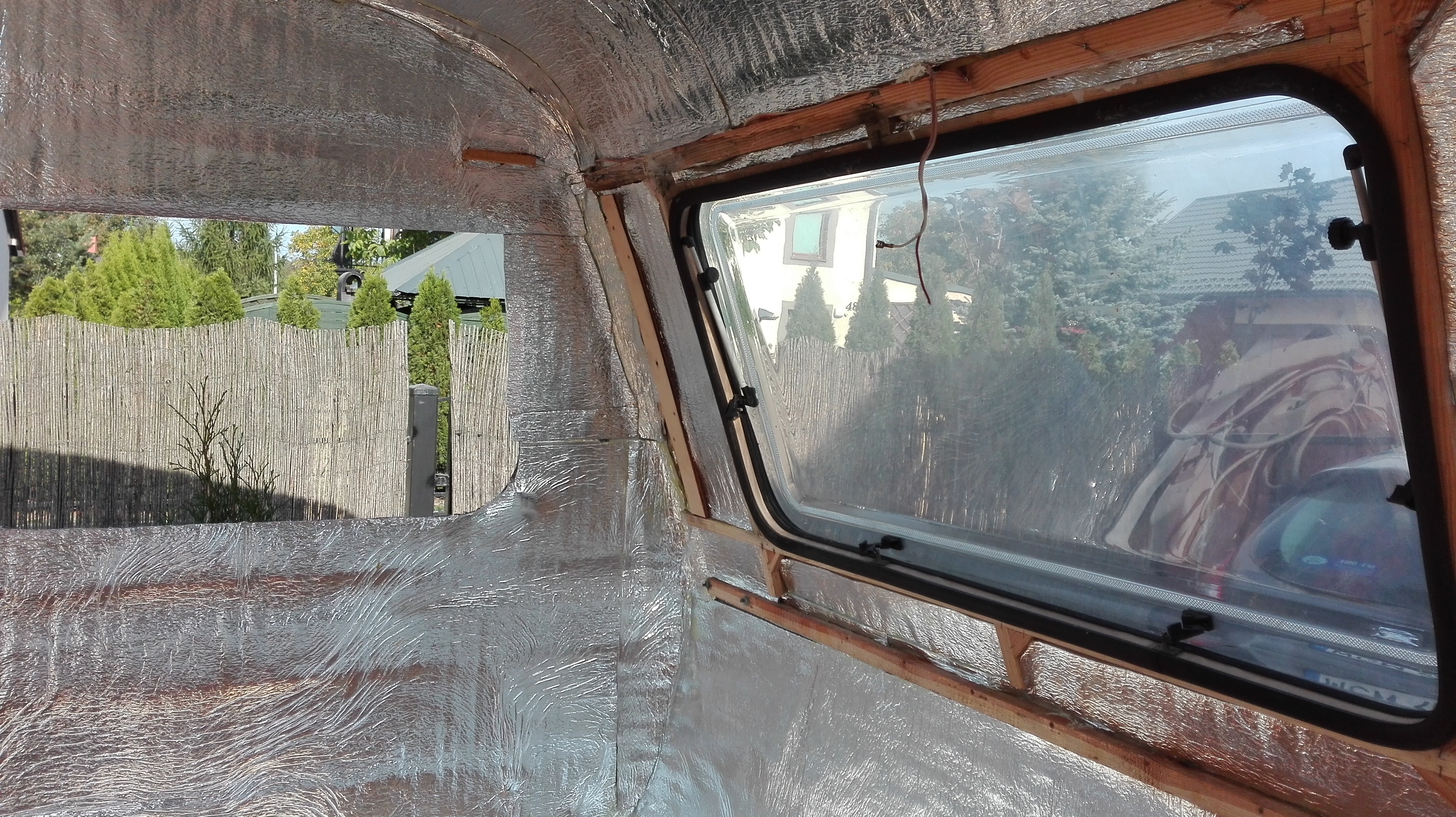 Ja nie mam folii aluminiowej na styropianie tylko na piance. Ta polecil mi Stachu. Trzyma jak diabli, jak zlapala mi klej i chcialem odkleic to nie puszczala za cholere, tzn nie odwarstwiala sie. Nie sadze zeby sreberko odchodzilo od reszty.f aktycznie niekleilem laczen. Na razie wykleilem tylko te scianki z oknem stalym. Nie mniej jednak nic nie przswitywalo, bo robilem to przy pieknym sloncu. Okna pocklejalem uszczelniaczem, ale jak zakladalem to pewnie co nieco wytarlem. Przed wlozeniem klina postaram sie je jeszcze zapaćkać. Na razie martwi mnie ten przeciek, ale to pod oboma oknami wiec chyba trzeba je doszczelnic i zaklinowac. Dzis przykrylem przyczepke folia budowlana, bo i po co ma dalej po niej lac.
