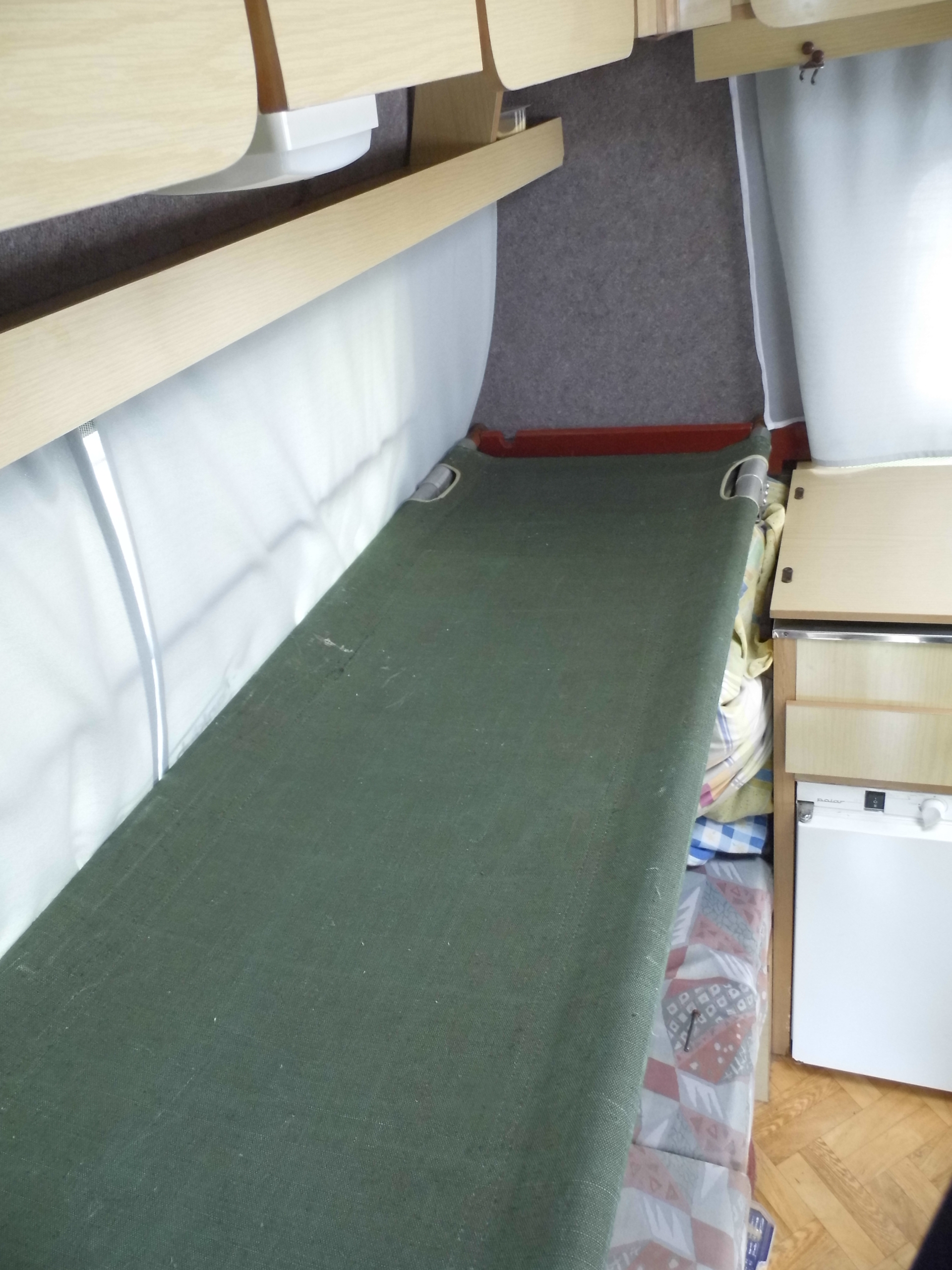 Po jednej popołudniówce powstał podest przymocowany do nadkola i podłogi (niestety nie mam zdjęć gdyż jest tam bardzo ciasno, a montażu dokonywałem bez demontażu pieca czy szafy). Teraz aku stoi nad nadkolem w dolnej skrytce szafy. Następnie wykonałem sztywną pojedynczą ocieploną pianką ściankę od rury trumy i drugą sztywną ścianę również ocieploną od strony trumy, zostawiając cyrkulację powietrza do akumulatora z kufra dużego łóżka i spod wewnętrznej podłogi przy nadkolu, pozostawiłem też odstęp pomiędzy trumą, a ścianką ocieploną akumulatora pozwalający na zamontowanie trumawentu. Po przeróbce i dopakowaniu przyczepy na wyjazd przyczepa stoi teraz równo, zobaczymy jak to się sprawdzi