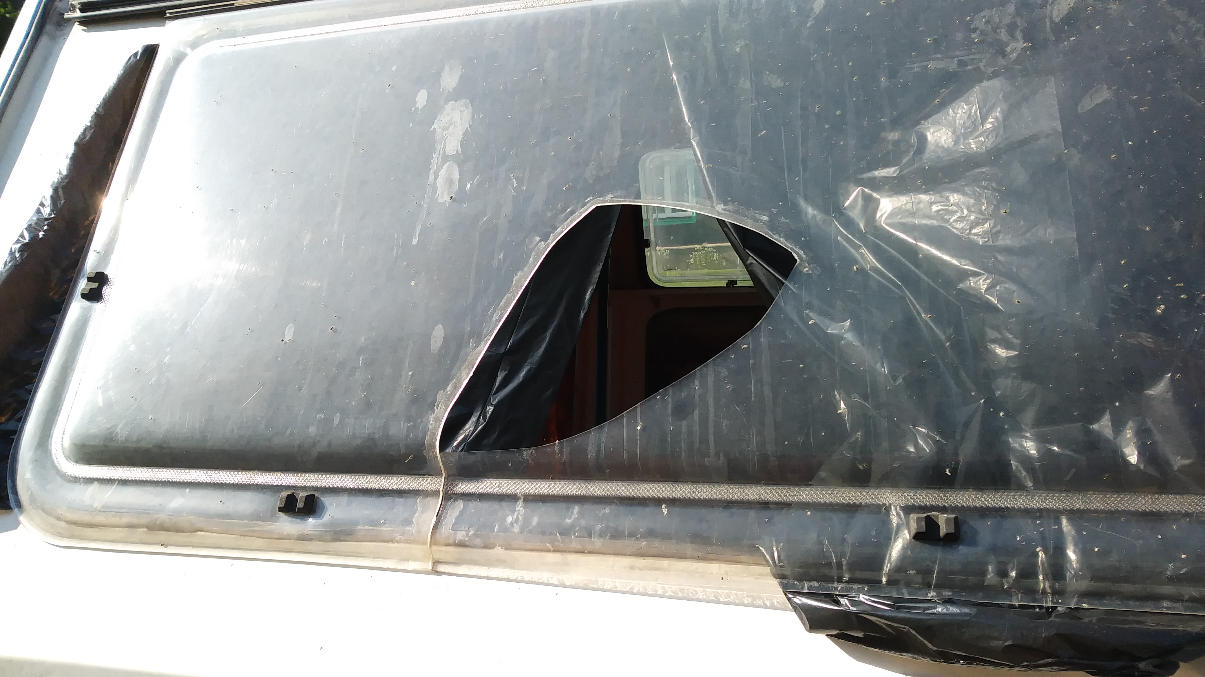 Zalaminowane do końca wszystkie otwory w budzie, zalaminowane, "dla spokojności", od środka listwy. Po dużym deszczu jest sucho. Osadzone na nowo płyty okienne i uszczelki.