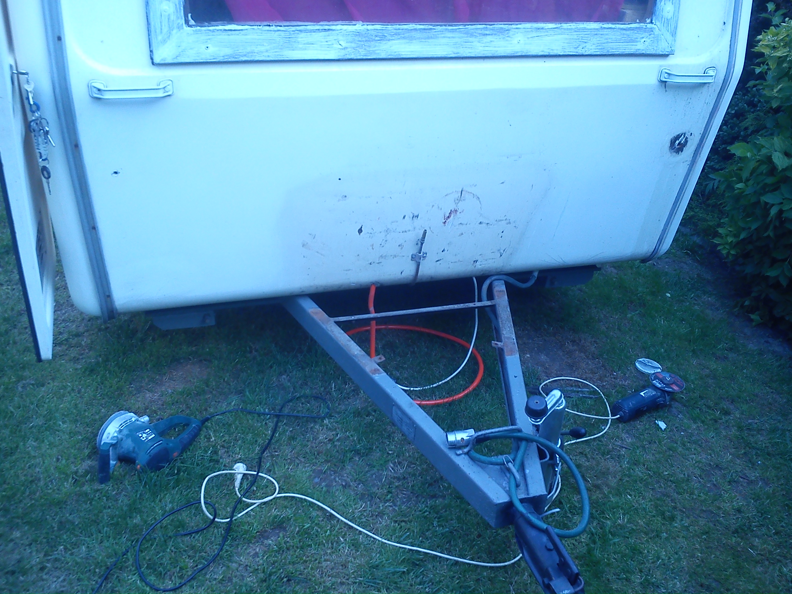 Instalacja doprowadzona do piecyka zamontowana pod przyczepą oczywiście w miedzi natomiast instalacja do kuchenki poprowadzona wężem do gazu.