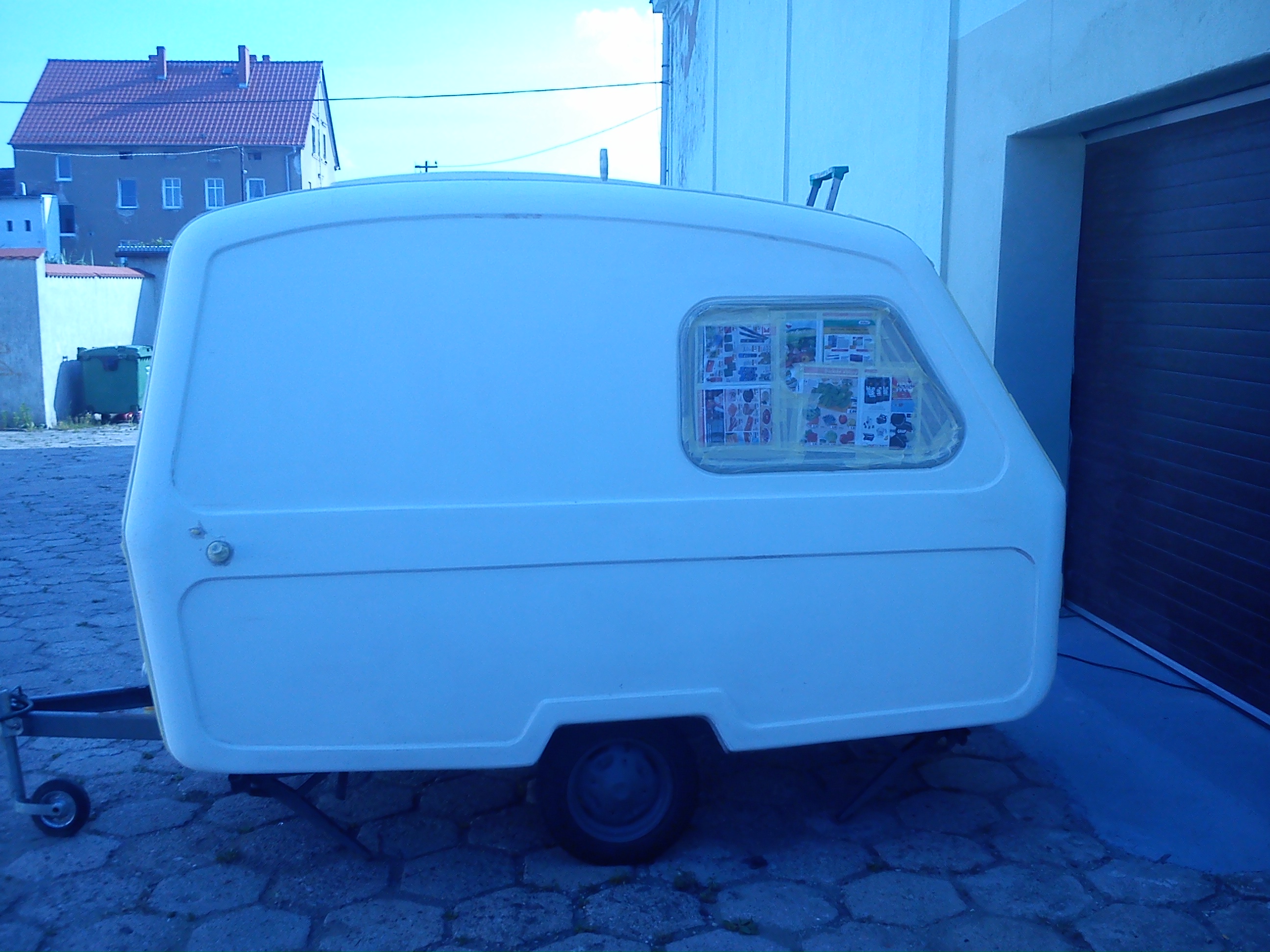 Zanim przyczepa została poszpachlowana i pomalowana zakupiłem też piecyk gazowy