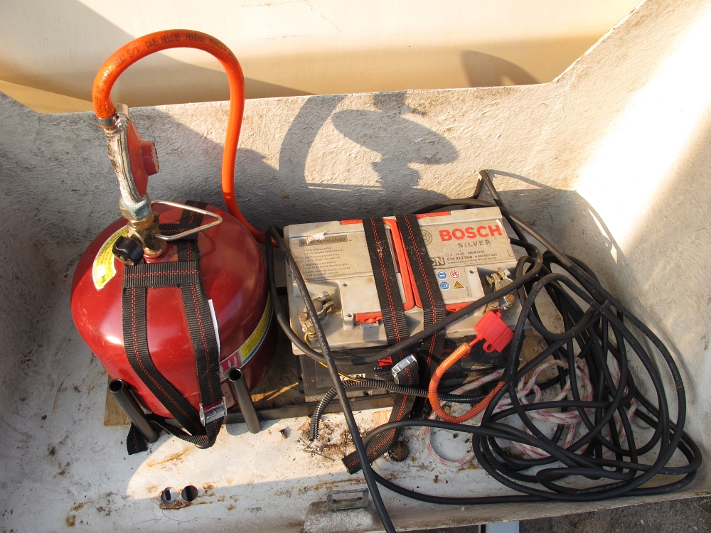 No i właściwie było już z górki :) Jeszcze płyty okleinowane z MDF wokół okien, podłączenie wody, kanalizacji (syfon z miedzi), odprowadzenie szarej wody ze zbiornika, oświetlenie, ogrzewanie (grzejnik niskotemperaturowy 500W - polecam!) i różne poprawki. I można było jechać na urlop. Aaa no i 40mb gumowanego kabla 230v w bakiście.