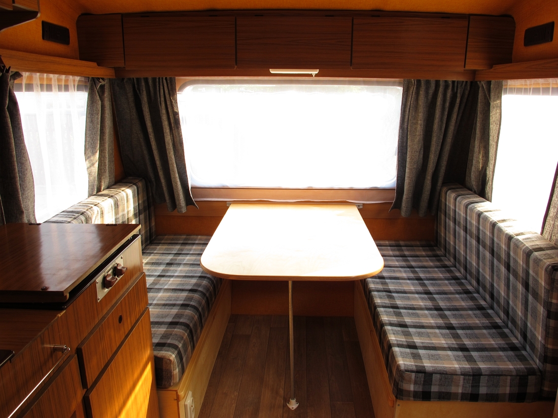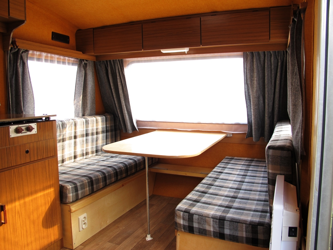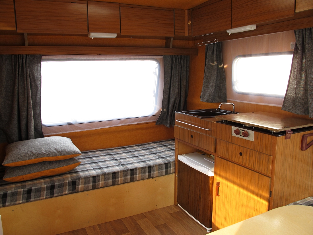 Bardzo podobają mi się zasłony i materace, nadają wnętrzu trochę nowocześniejszy wygląd. Fajne trzasnąłeś też te niebieskie pasy po bokach przyczepy.