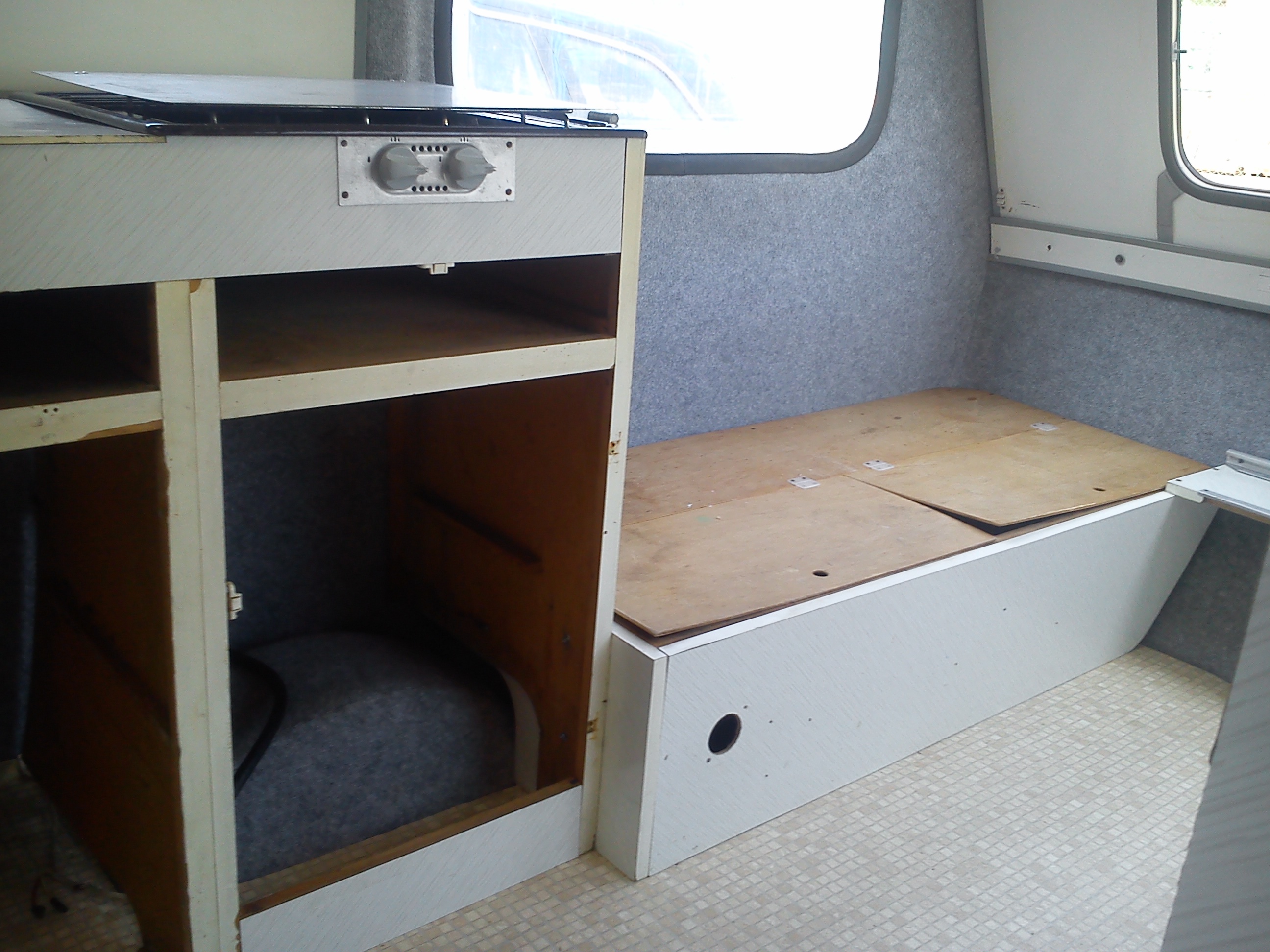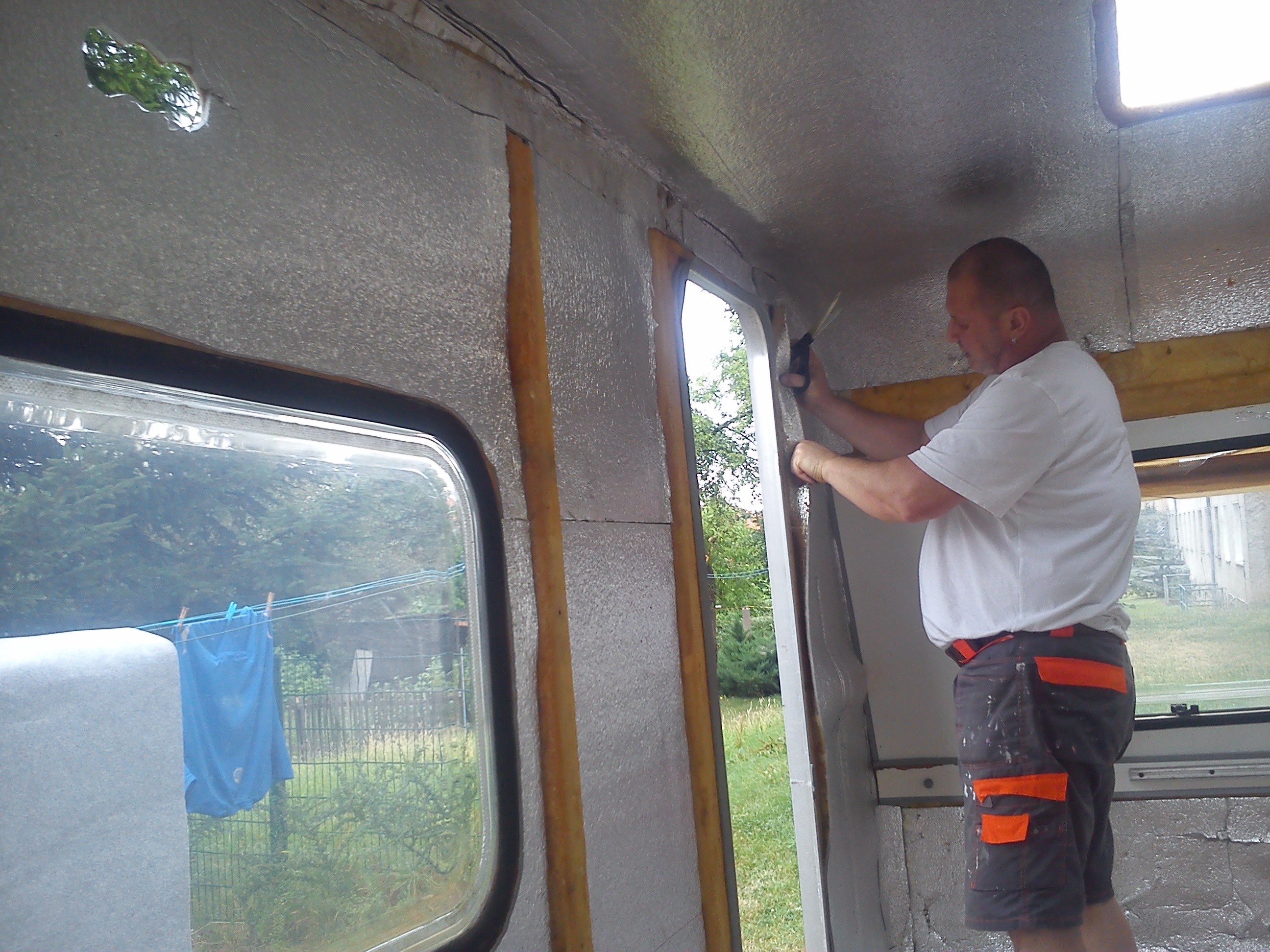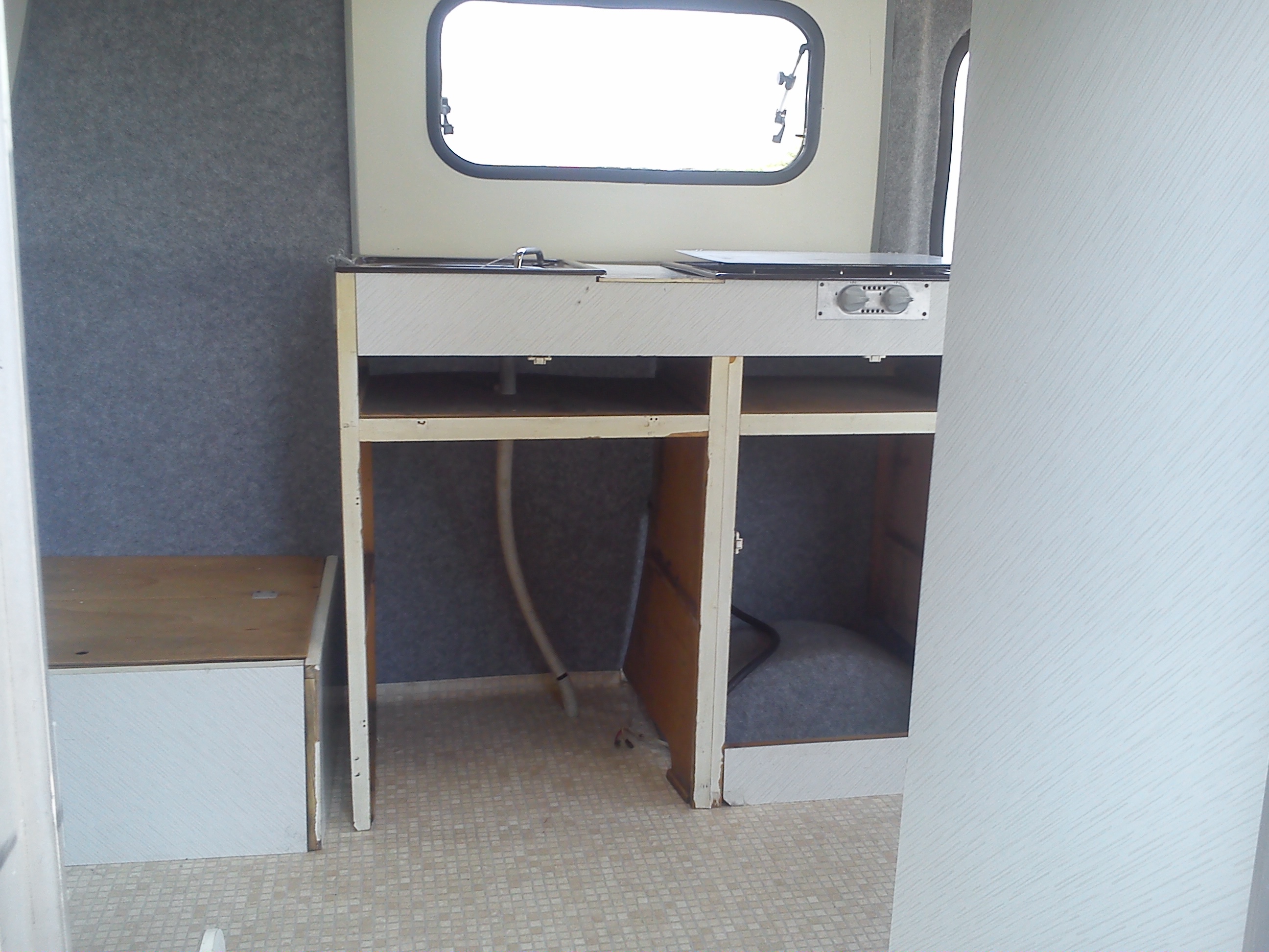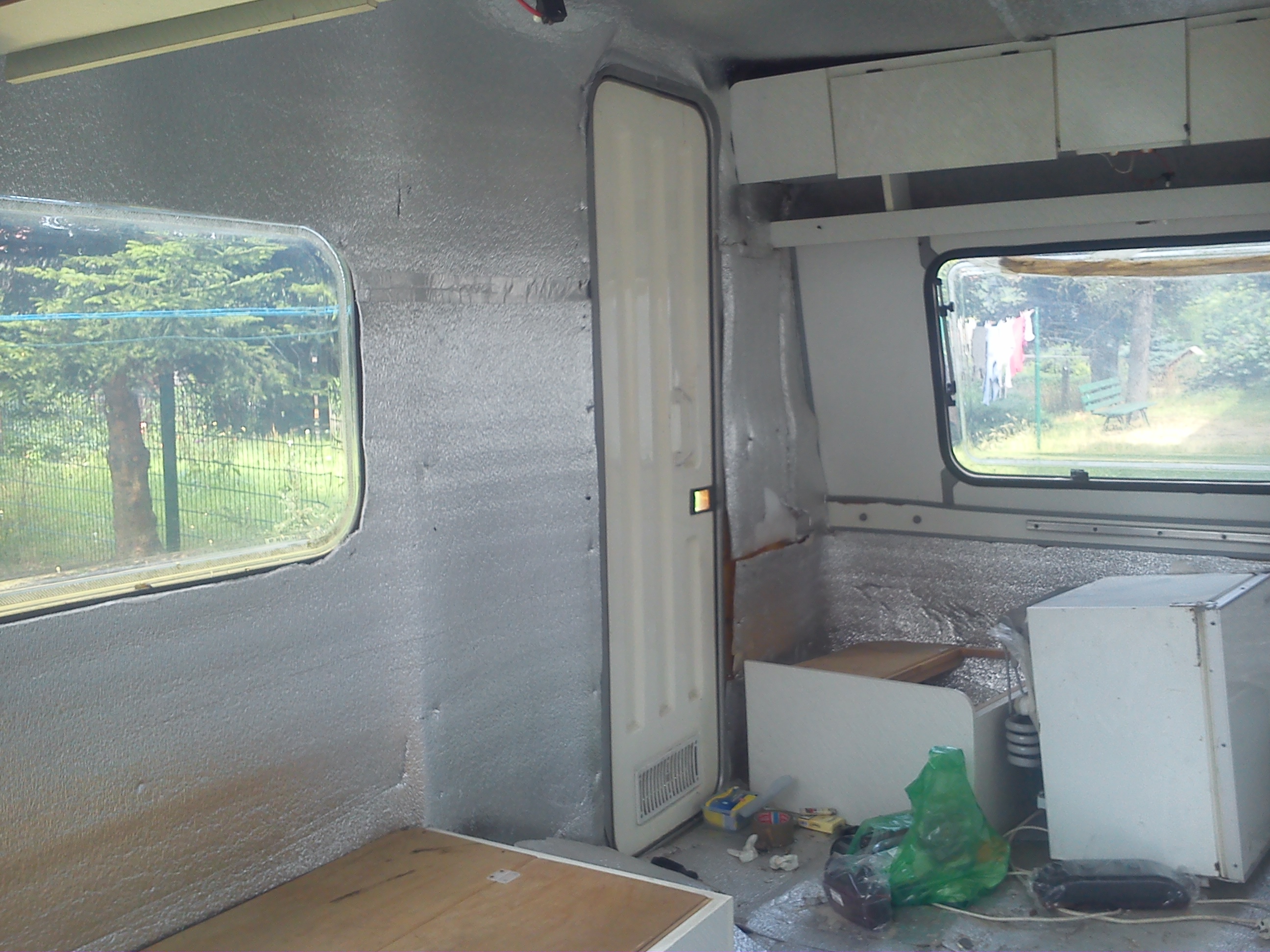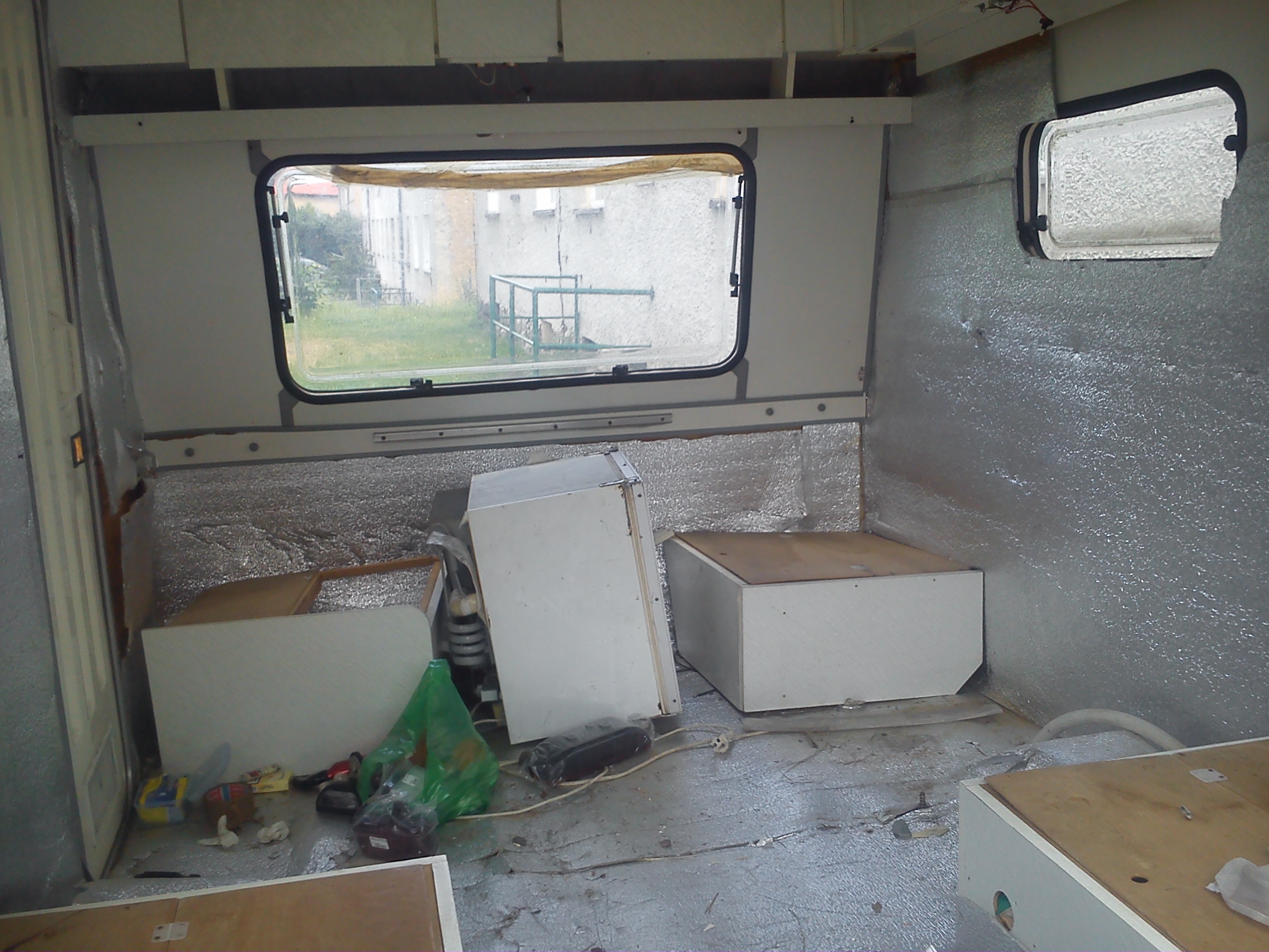 Moja N-ke wynalazlem pod Wroclawiem,jak wszystkie Niewiadki oczywiscie do remontu ale sprawe mialem o tyle ulatwiona ze wlasciciel zaczal remont tzn.wybebeszyl caly srodek i wylozyl izolacja,na tym jednak poprzestal i Enka dogorywala u niego na podworku.Po przyjezdzie okazalo sie ze nie jest tak kolorowo bo izolacja owszem jest ale to jedna wielka prowizorka na dodatek nie przyklejona do scian,a najgorsze bylo to ze wszystkie meble staly od dluzszego czasu pod chmurka.Nie zniechecilem sie i mimo wszystko przygarnalem Eneczke.Na szczescie mam zaprzyjaznionego tapicera i od razu po przyjezdzie na baze cala ekipa zabralismy sie do ratowania skorupki.