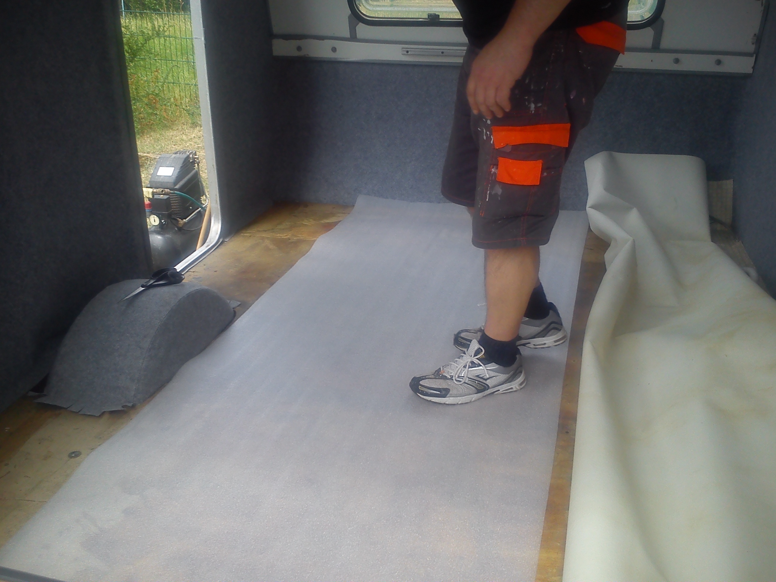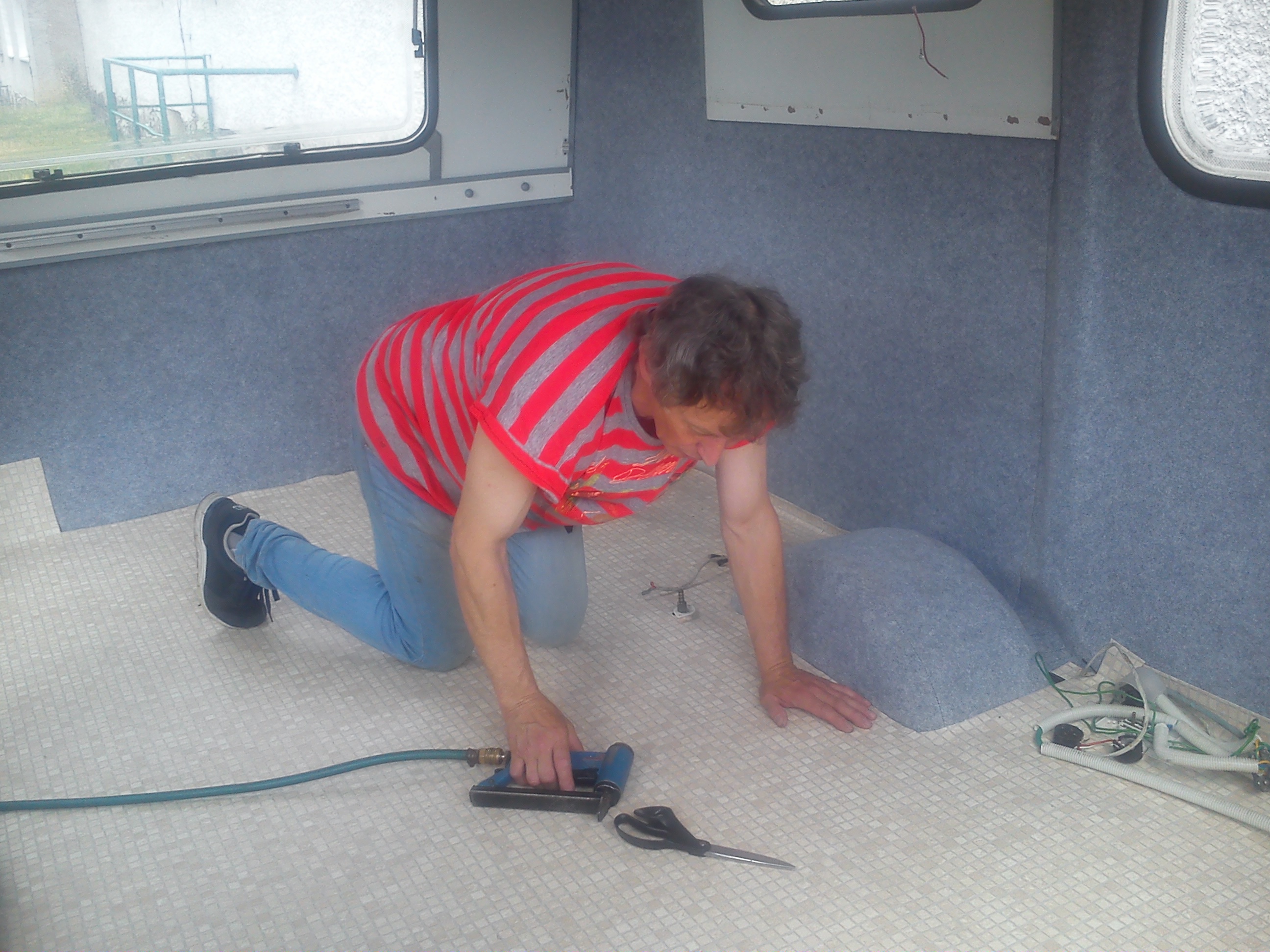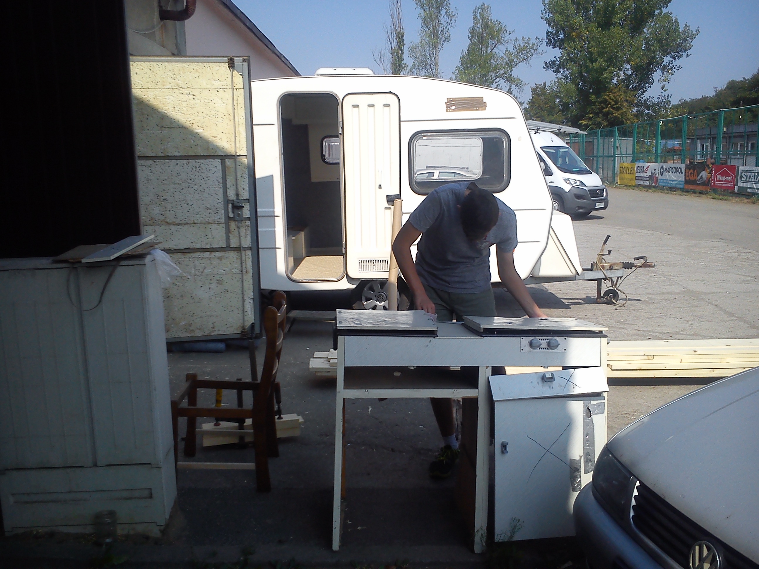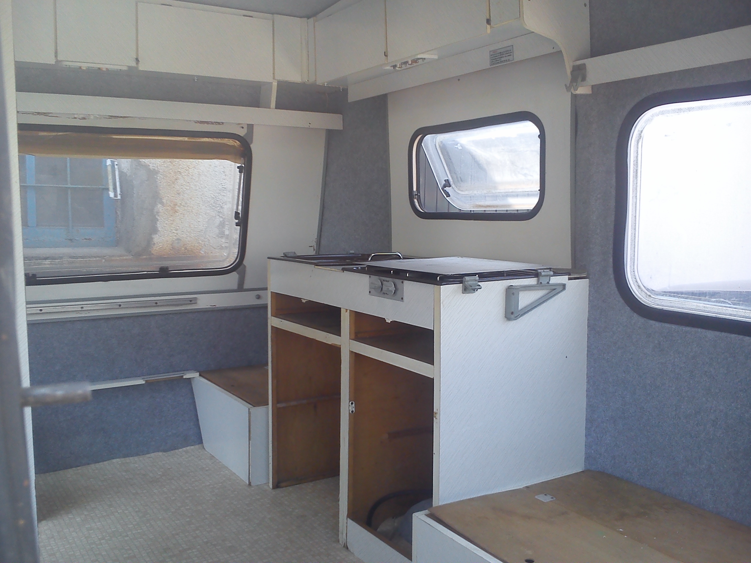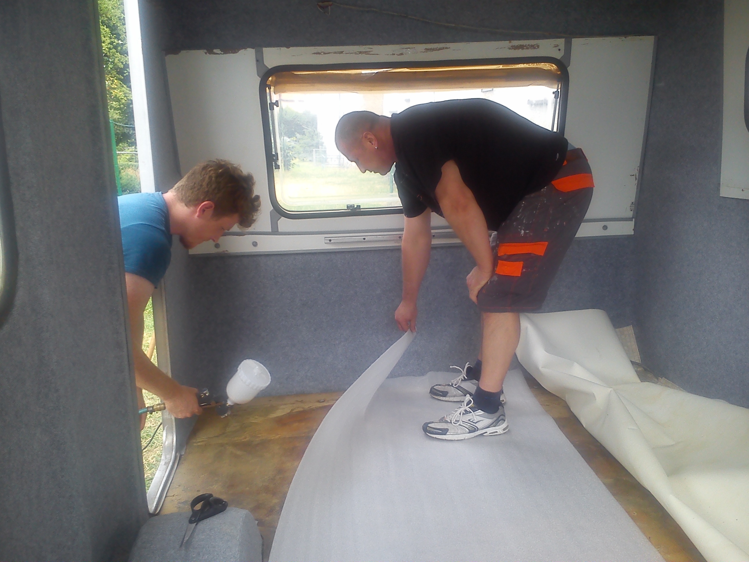 Moja N-ke wynalazlem pod Wroclawiem,jak wszystkie Niewiadki oczywiscie do remontu ale sprawe mialem o tyle ulatwiona ze wlasciciel zaczal remont tzn.wybebeszyl caly srodek i wylozyl izolacja,na tym jednak poprzestal i Enka dogorywala u niego na podworku.Po przyjezdzie okazalo sie ze nie jest tak kolorowo bo izolacja owszem jest ale to jedna wielka prowizorka na dodatek nie przyklejona do scian,a najgorsze bylo to ze wszystkie meble staly od dluzszego czasu pod chmurka.Nie zniechecilem sie i mimo wszystko przygarnalem Eneczke.Na szczescie mam zaprzyjaznionego tapicera i od razu po przyjezdzie na baze cala ekipa zabralismy sie do ratowania skorupki.