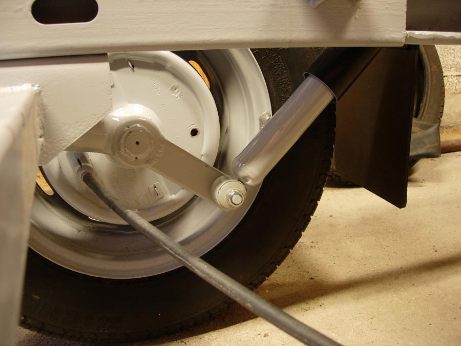 Do oryginalnych wahaczy spawamy (porządnie!) dodatkowe ramiona - przedłużenie wahaczy. Zastosowałem tutaj profil stalowy 40x20x2. W profil wspawałem śrubę klasy 8,8 fi 12mm. Profil dodatkowo zaślepiłem od dołu. Jako górne mocowanie amortyzatora zastosowałem istniejący w ramie kątownik podpierający skorupę. Trzeba tylko dorobić mocowanie amortyzatora - proponuję wykonać je jako dokręcane na 2 śruby fi 8mm klasy 8.8.