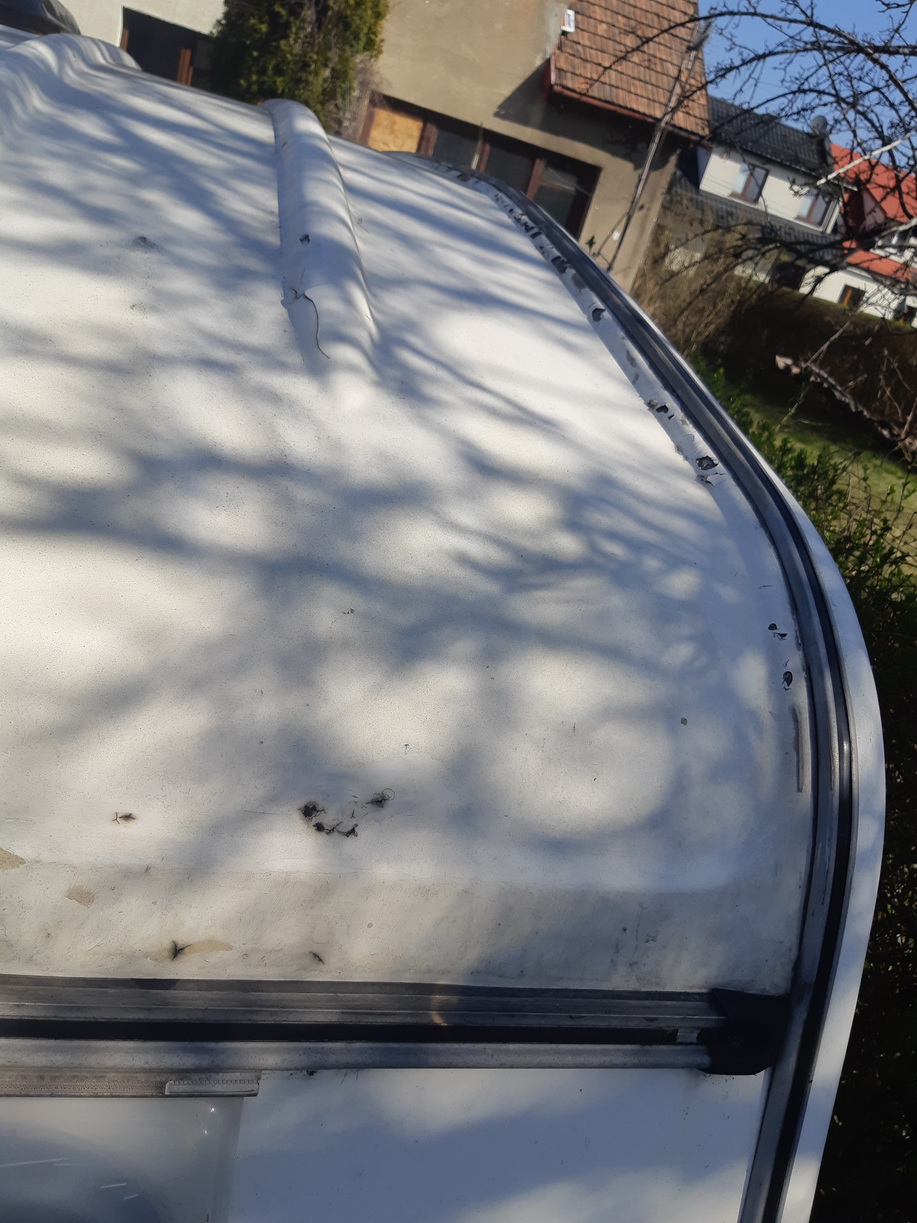 Poszedłem na łatwiznę... dałem do naprawy laminatów; 750 zł cały dach plus wstawienie laminatu zamiast okna z tyłu bez lakierowania. Nie miałem siły do tego, a myślę, że to uczciwa cena  Okna już z tyłu i tak nie miałem. Miałem plekse skręconą ze sklejką bo tam mam łazienkę i kuchenkę.
