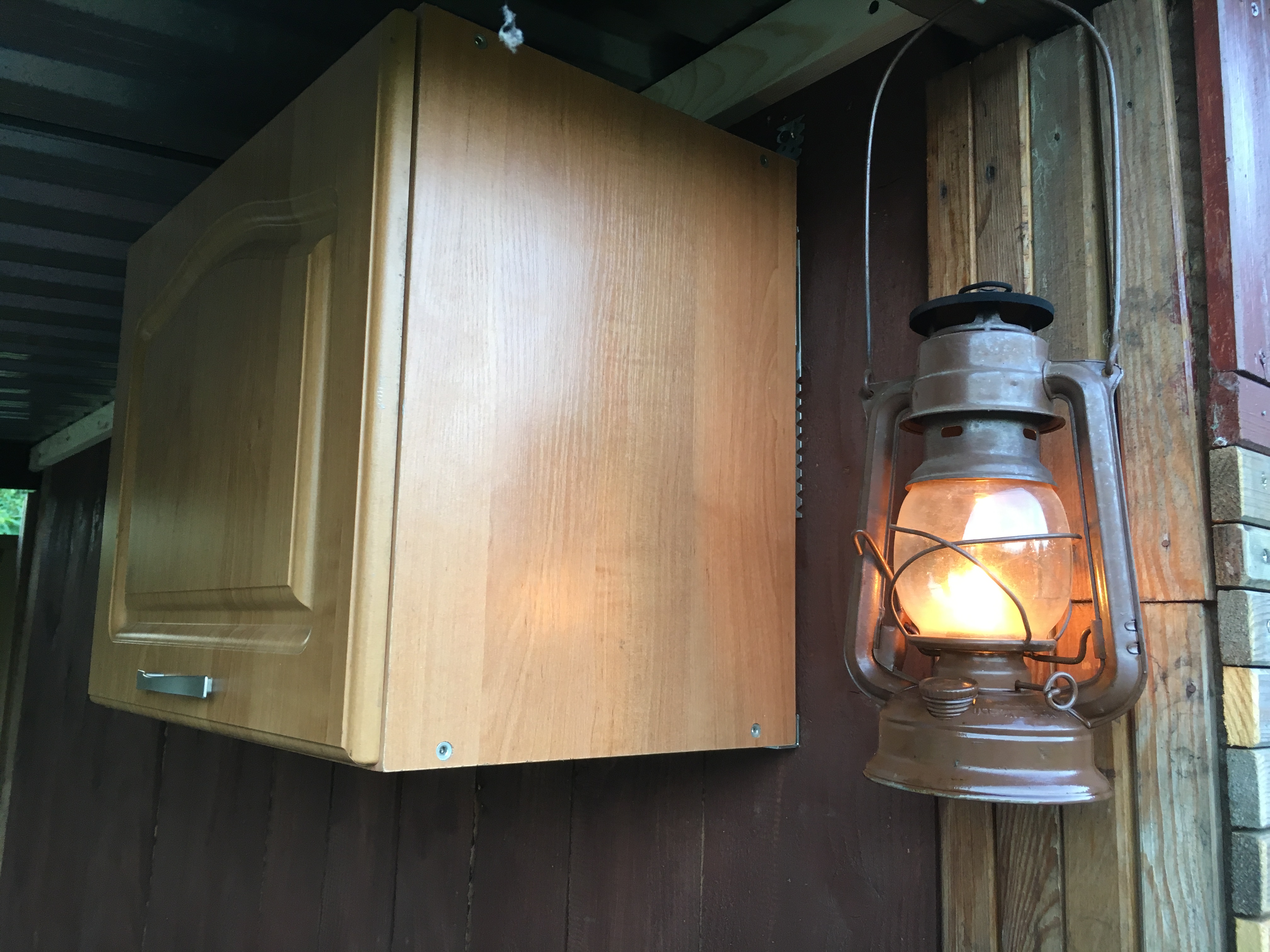 Mój sposób na komary na działce: lampa Alladyna i nafta do pochodni - pod wiatą działa.