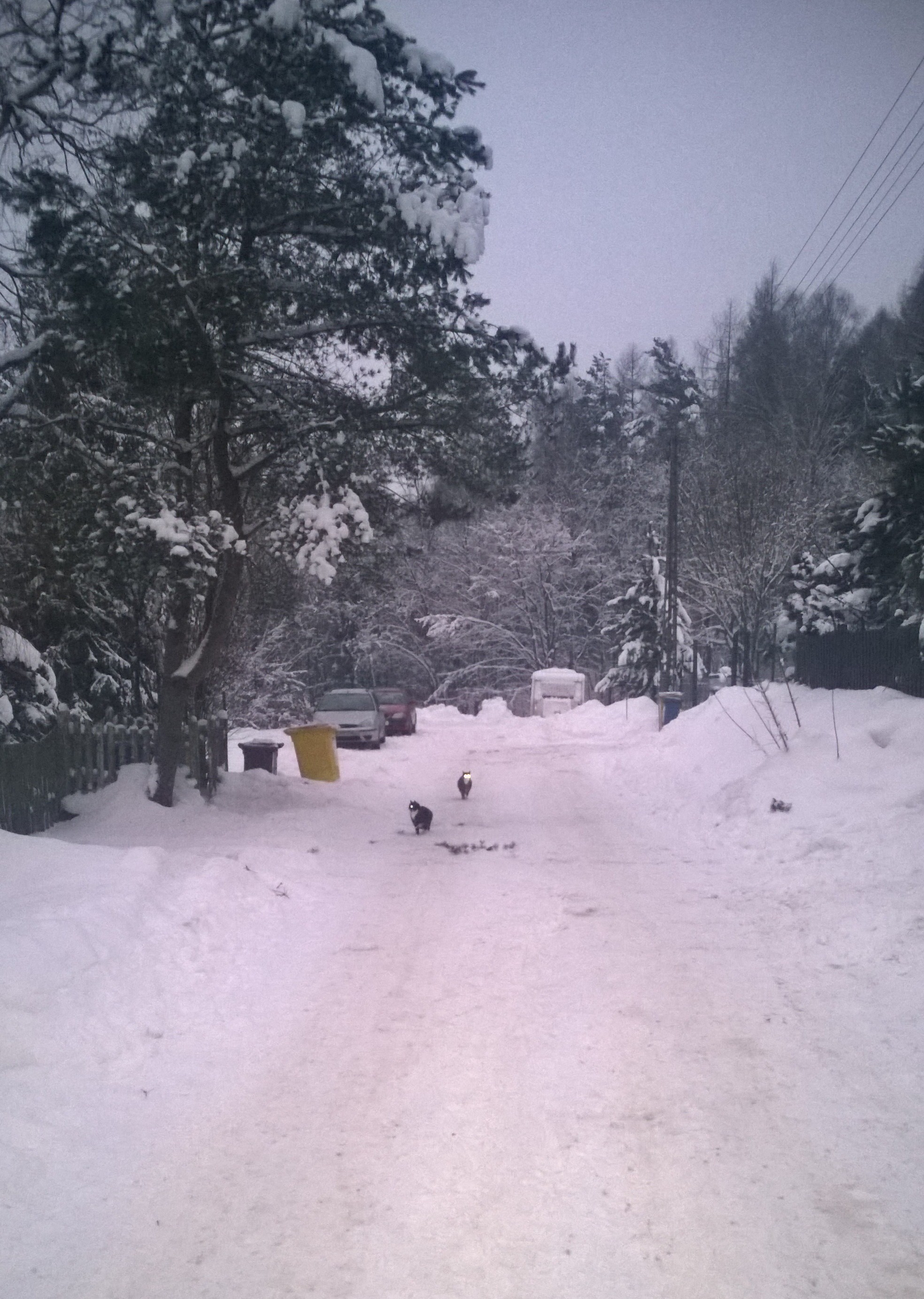 O widzisz, a u mnie dzisiaj, mimo porannej gołoledzi, odwilż. Wszystko płynie, a to co jeszcze leży to już tylko syfiasty, brudny śnieg. Niech stopnieje całkiem albo napada świeżego, bo widok za oknem słaby. Ja od zawsze odśnieżam tylko chodnik do furtki, chodnik równoległy do ogrodzenia (takie prawo) i ścieżkę do drewutni i warsztatu.