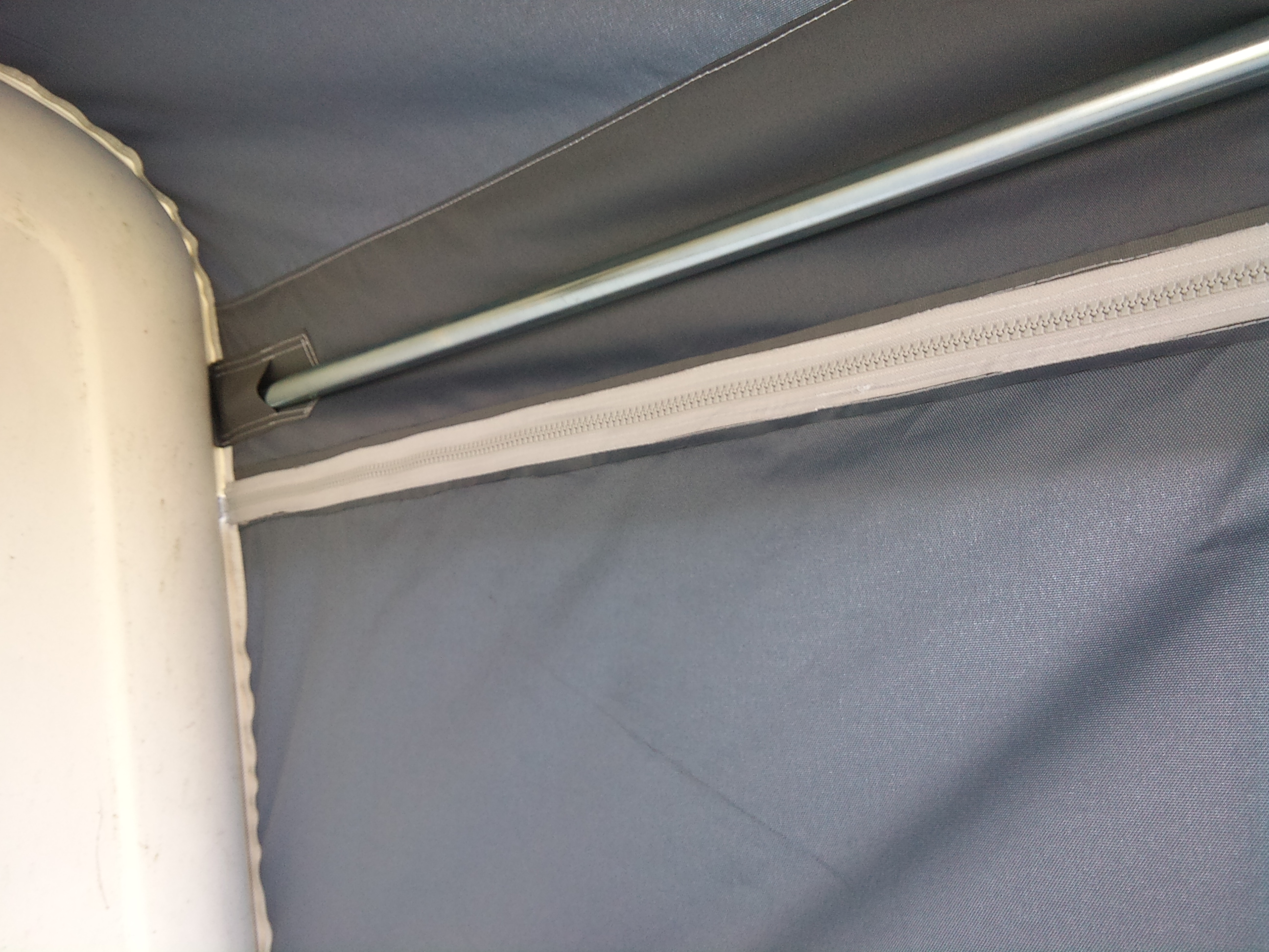 Wówczas w przyszłości można tylko domówić boczki, z wszytą drugą połową suwaka i móc w razie bocznego wiatru dopiąć boczne ścianki.