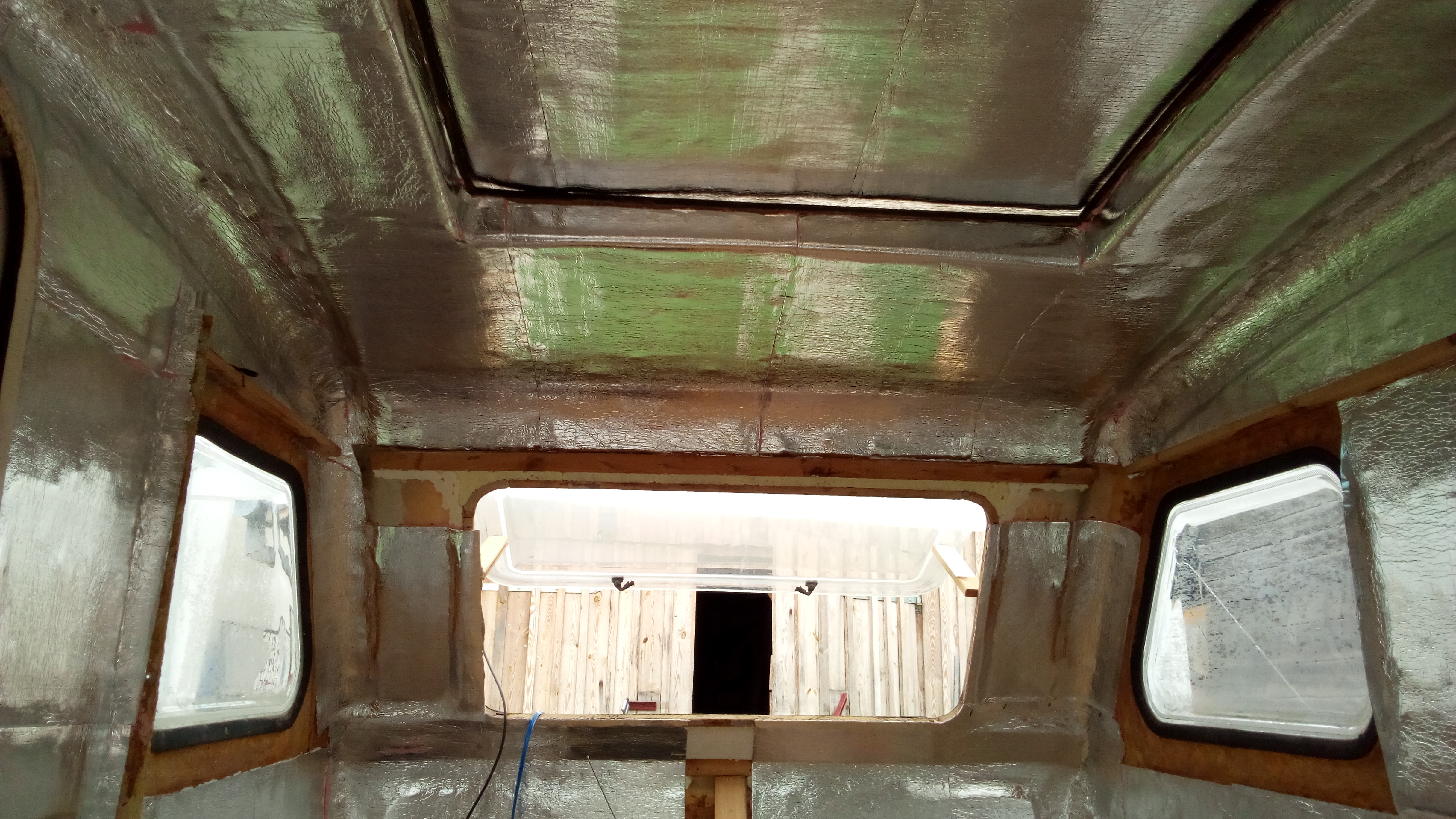 Wyklejone jest prawie wszystko, oprócz ściany przy drzwiach z przodu, bo będę jeszcze wymieniał zawiasy w drzwiach. Także nie dociągnąłem jeszcze ocieplenia przy oknach - bo będą wymieniane uszczelki. Wtedy pojadę do krawędzi z ociepleniem. Nawiasem mówiąc wymieniam wszystko co gumowe w cepce, kliny, zakończenia przy listwach okiennych, uchwyty manewrowe.