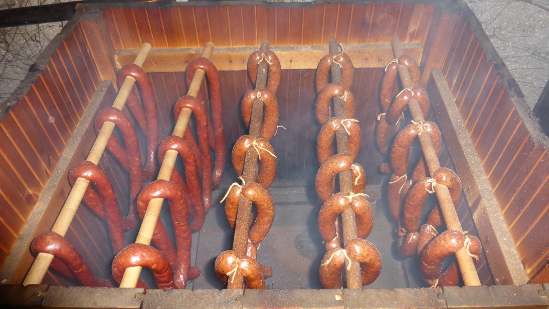 Dwa rodzaje kiełbachy, oba robione na soli z Ciechocinka, bez peklowania.