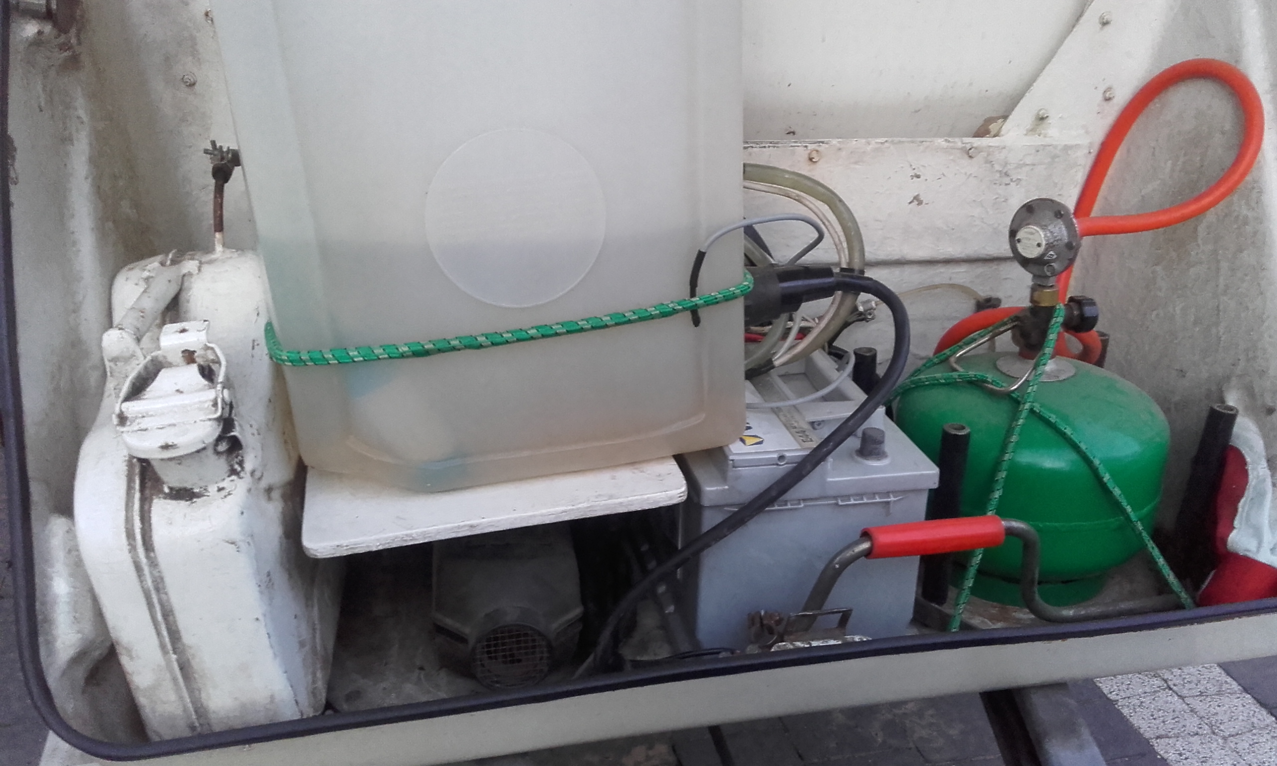 Zbiornik z paliwem to zwykły kanister 5 litrowy z zamontowaną na stałe rurką metalową, która robi za ssak.