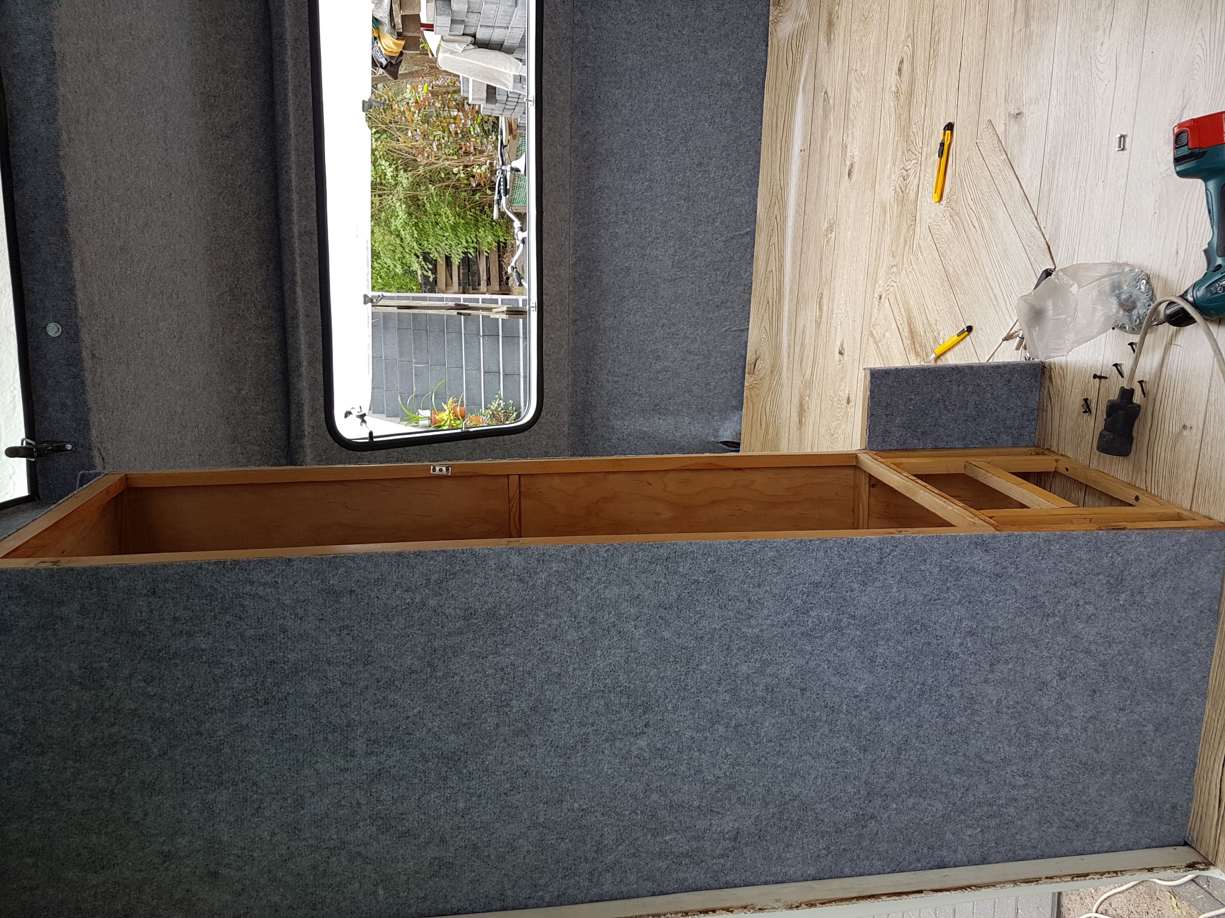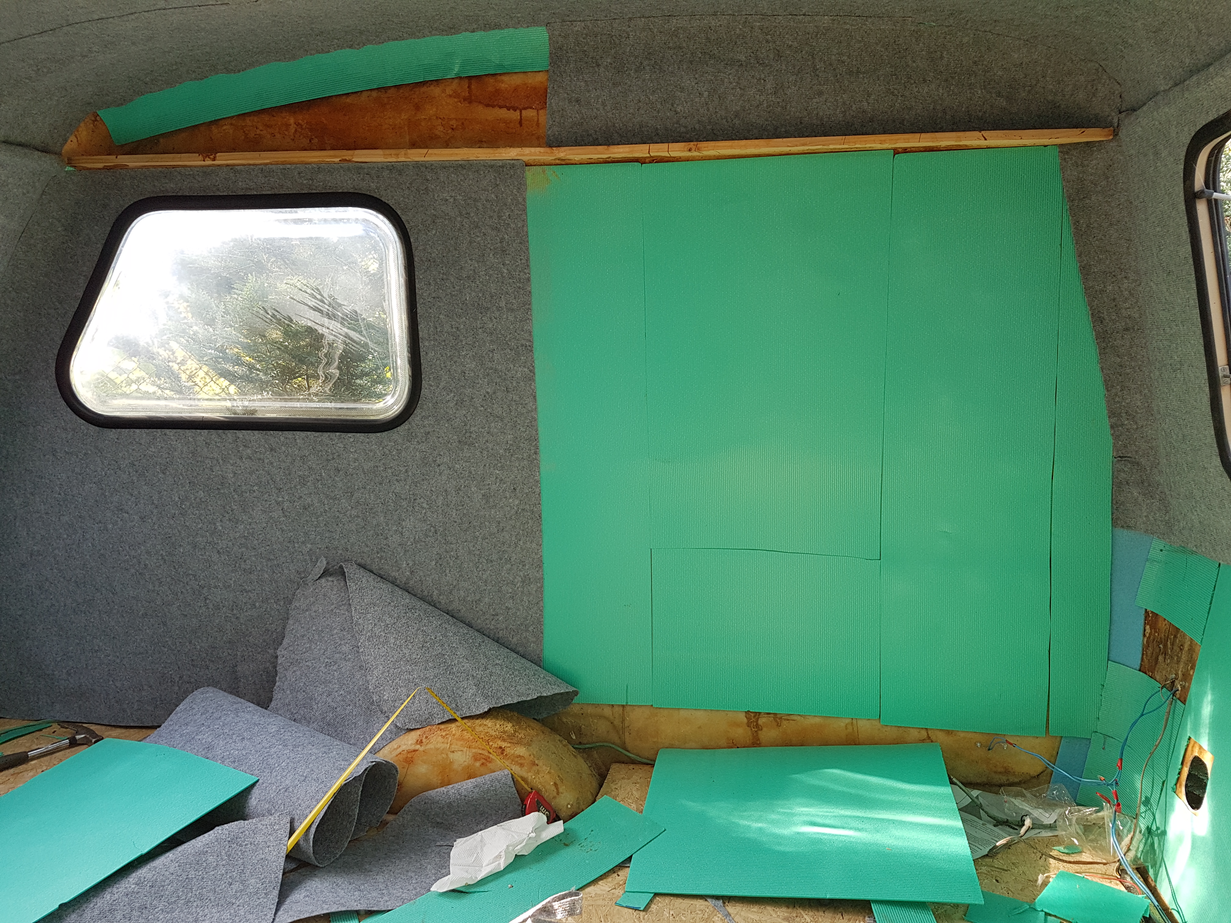 Tapicerka już jest przyklejona, podłoga też wymieniona. Jeszcze odnowić mebelki i położyć instalację elektryczną 230v... mam nadzieję że się wyrobię - hel czeka ;)