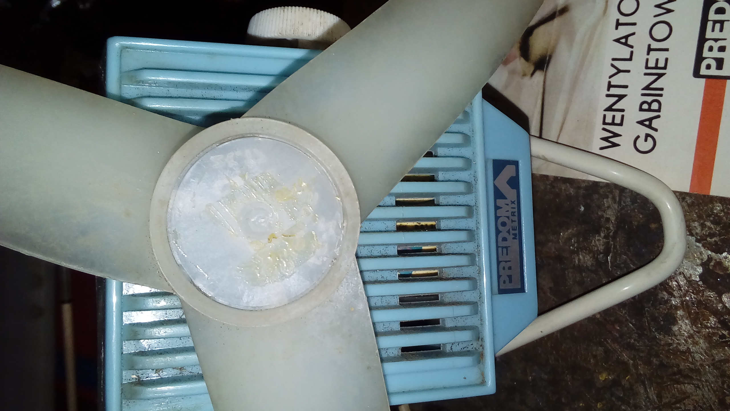 Udało się i mam kolejną rzecz z epoki z opakowaniem, instrukcją obsługi i nowym, nigdy nieużywanym wiatraczkiem. Moc 12 W i może sobie śmigać w przyczepie na przetwornicy całe upalne dnie