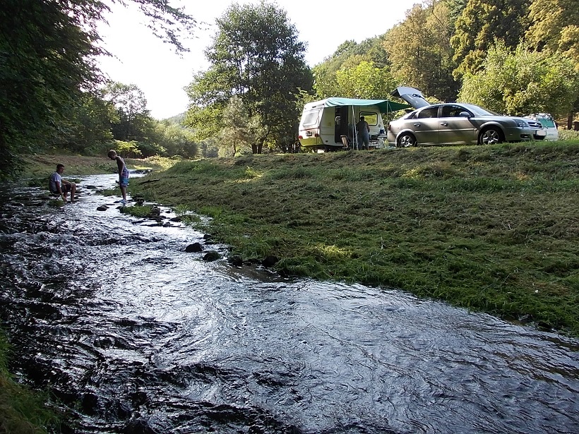 Kemping jest położony praktycznie na granicy tych miejscowości między drogą o Złotym Potokiem.Stromy zjazd z drogi na posesję; z przyczepą dłuższą niż 4 metry może być problem.