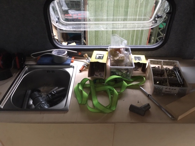 Nad lodówką montuję zlew. Niestety czekam jeszcze na zgrabny syfon ten dostarczony z zlewozmywakiem, kompletnie się nie nadaje.