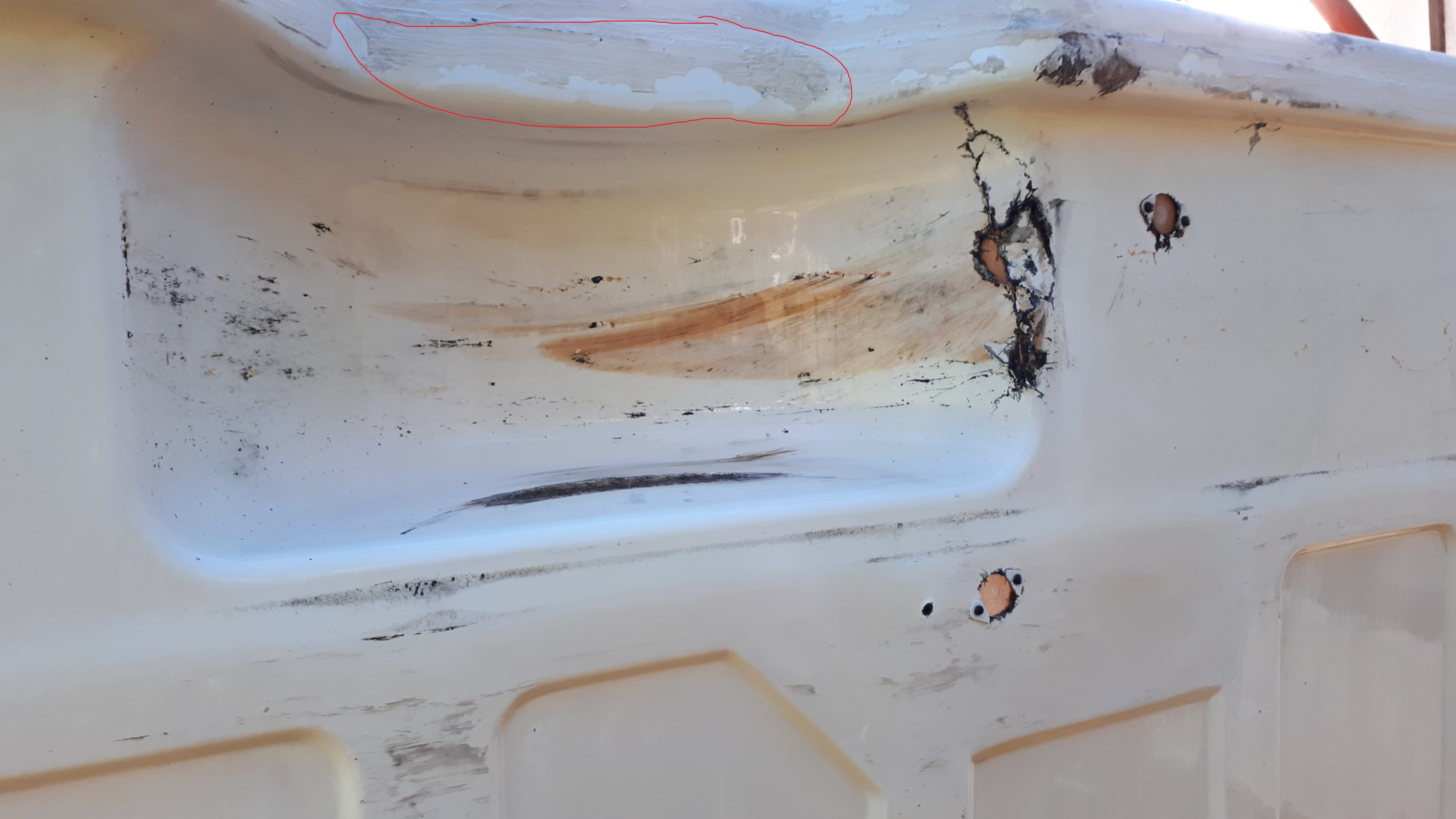 Spód się robi... Wszystkie dziurki i mikropęknięcia zaklejone epidianem 5 z pac 1: 1 żeby było elastyczne. Na to poszła szpachla z włóknem.