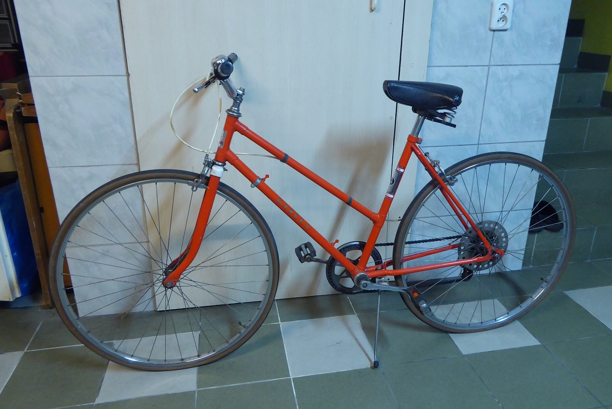 Córka używała roweru symbolicznie i miał szansę zachować się lepiej, lecz niestety (jeszcze w tamtych czasach) spadła na niego drabina uszkadzając tylną część ramy. Zostało to wyprostowane na ile się dało i wydaje się, że koło prowadzone jest w miarę dobrze, choć uszkodzenie wygląda słabo. Wagant jeździł więcej ale też nie jakoś specjalnie dużo, co widać po oponach. W latach 90-tych dostał to brzydkie siodło i jaskrawą owijkę kierownicy.
