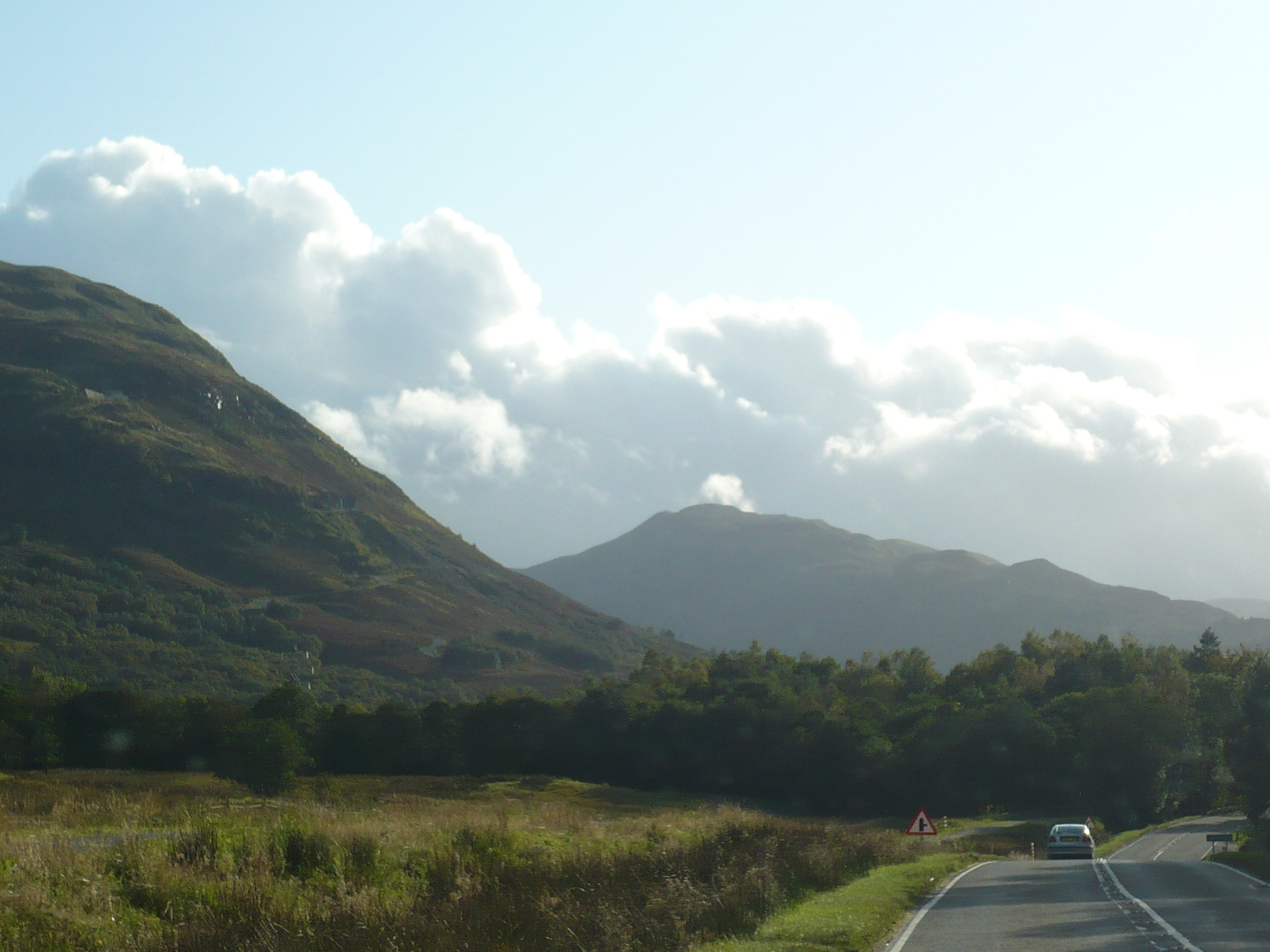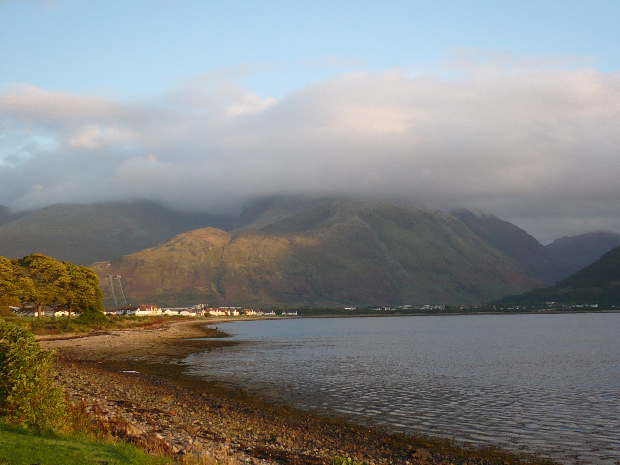 Ta górka za chmurami to... tak! To Ben Nevis, najwyższy szczyt górski Szkocji oraz całych Wysp Brytyjskich, zaliczany do Korony Europy (1345m.n.p.m). Ale spokojnie, jutro rano tu wracamy i będzie w całej okazałości