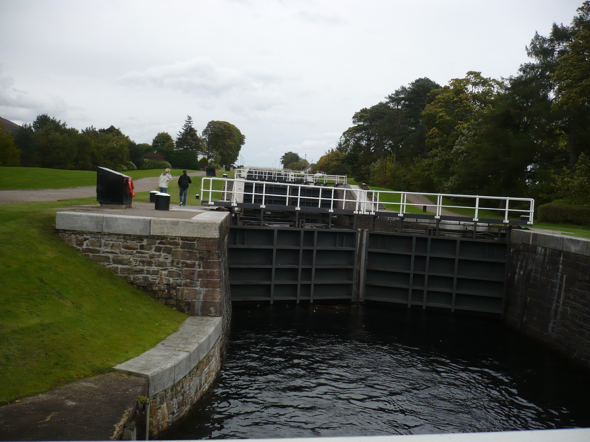 "Schody Neptuna w Banavie, w pobliżu Fortu William na północ od Loch Linnhe na Kanale Kaledońskim są zarządzane przez Scottish Canals. Jest to najdłuższy system śluz w Wielkiej Brytanii. Składa się z ośmiu śluz, każda 55 m na 12 m i przejście łodzi przez system zajmuje około 90 minut. Różnica pomiędzy górnym a dolnym poziomem to 20m. Obecne bramy śluzy ważą 22 tony każda i wymagają zespołu co najmniej trzech pracowników do obsługi schodów. Zazwyczaj działają one na zasadzie „wydajności”; to znaczy, próbują albo wypełnić każdą śluzę łodziami wznoszącymi się lub łodziami opadającymi, albo pozwolić na przepłynięcie jednostki w tym samym cyklu napełniania / opróżniania.Przed mechanizacją zamki były obsługiwane przez kabestany, każdy z czterema biegunami, które musiały wykonać siedem pełnych obrotów, aby otworzyć lub zamknąć bramę. Każde skrzydło bramy miało dwa kabestany, jeden do otwarcia, a drugi do zamknięcia. Było 36 kabestanów i wymagane było 126 obrotów, aby łódź mogła podróżować w górę lub w dół. Wraz z pojawieniem się siłowników hydraulicznych i sterowania przyciskowego czas tranzytu przez system został skrócony z nieco ponad pół dnia do 90 minut. W dalszym ciągu można zobaczyć cokoły oryginalnych kabestanów, chociaż same kabestany zostały usunięte."