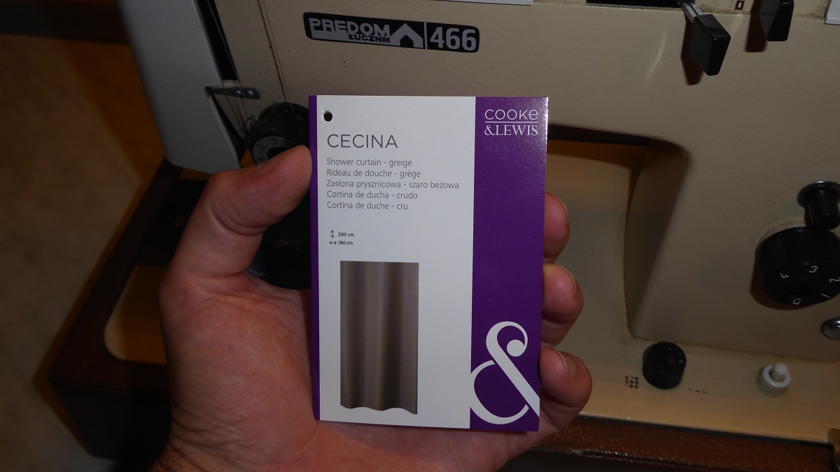 Kolejny temat to nowe zasłonki. Stare były już zajechane i dawno już chciałem uszyć nowe ale jakoś nie mogłem znaleźć odpowiedniego materiału. Wreszcie przypadkowo podczas zakupów w Castoramie trafiłem na mniej więcej to czego szukałem, na dziale z... kotarami prysznicowymi.