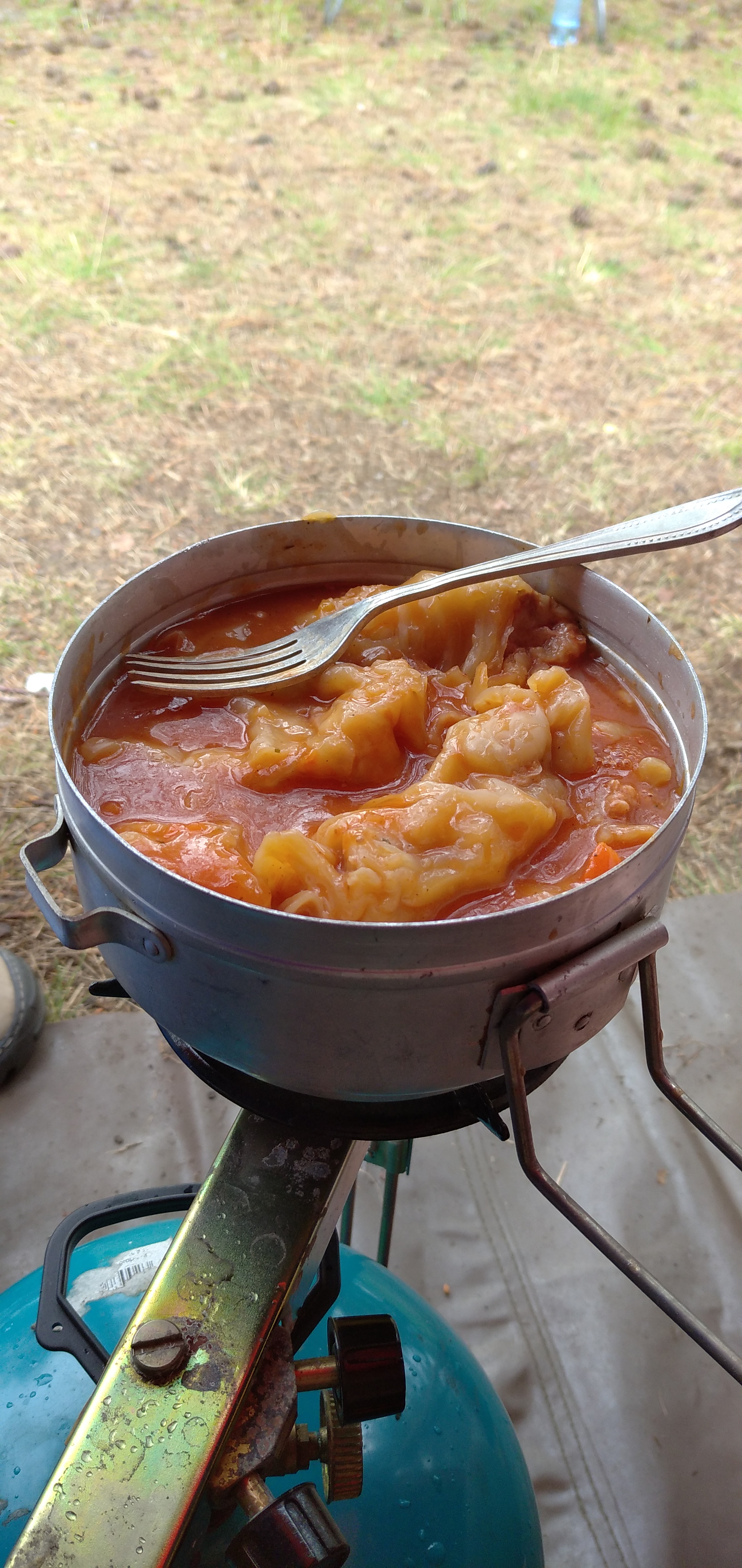 Kiełbasa z ogniska. Jutro serek topiony i kakao.