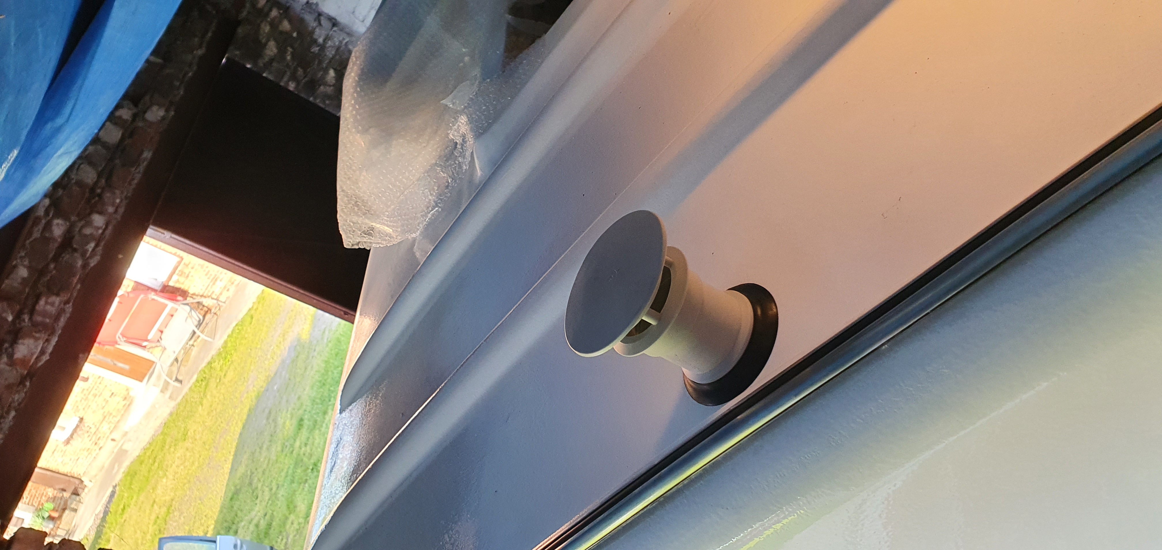 Ścianki przedłużone, wkleiłem deski 16mm, lodówka jednak będzie nad kołem, nie wiem jeszcze jak ją zakotwiczyć żeby nie latała. Musialem odciąć ori rurkę gazową pod podłogą. Przymiarka szafy i piecyka. Lekko sfrezowalem krawędzie na wysokości obudowy. Siedzi idealnie. Czy jest jakiś szablon Trumy do wycięcia otworu w podłodze? Z przyjemniejszych rzeczy zamontowaliśmy okno przednie i poleżeliśmy na przyczepowym materacu