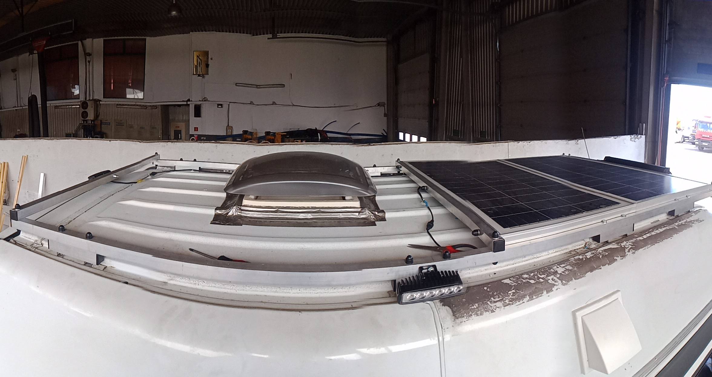 Instalacje solarów oraz lamp są wpuszczone do środka, w miejscu gdzie wcześniej była antena radiowa, za pomocą sprytnej małej puszki z sześcioma wejściami. Pod solarami jest niewiele miejsca, więc taka puszka o wys. 4cm weszła idealnie. Całość została jeszcze uszczelniona sikaflexem.