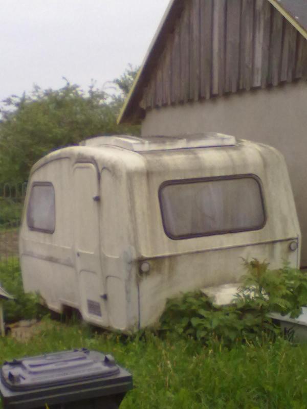 Kilka rzeczy udało mi się też odzyskać, takie pierdółki ale zawsze to w kieszeni kasy trochę zostanie min. korpus nogi stołu i zaślepka, 2 krótkie zawiasy stołu niestety stół się rozwarstwił... linki do zasłonek. Największy ubaw miałem ze znalezionego we wewnątrz wiatraczka firmy Predom z 90 roku na 230v(foto niżej) i ku mej uciesze działa bez zarzutu (pewnie służył jak klima hehe) niby nic ale cieszy. Na jesieni zeszłego roku zaraz po nabyciu budka co oczywiste została kilkukrotnie umyta i otrzymała nowe używane kółka, które na biegu pomalowałem, efektu powalającego nie ma ale zawsze to świeższy wygląd i o niebo lepiej wygląda. Martwi mnie kilka rzeczy a mianowicie olbrzymie pająki na laminacie i przyspawany przez jakiegoś pseudo "magika" zaczep, płaskownik i do ramy, no kuźwa geniusz. W zimie poczyniłem kilka zakupów do Niewiadóweczki, a to zaczep, a to koło podporowe, a to lampy tylnie, lampy przednie białe, odblaski białe, pomarańczowe i trójkątne, a to ramka alu.wywietrznika w drzwiach, raczki manewrowe bo wcale ich nie było,a to wyłącznik nożny, a to klucz do podpór, a to reduktor gazu bo butle mam z odzysku, a to bankę na wodę,jakieś naklejki Niewiadów, grzejniczek etc. Wszystko rozszabrowane nie było niczego jak u Kononowicza :). Póki jeszcze nie jest zbyt ciepło planuje sprawy formalne doprowadzić do końca czyli oc i przerejestrowanie. Jednym słowem brud, syf, gąbka i malaria jak to się mówi. Pracy zapowiada się OGROM, mnóstwa rzeczy nie ma... Dlaczego to robię? nie wiem i pewnie nie jeden/a z Was zastanawialiście się dlaczego i nad remontem, za włożoną w to kasę można kupić już coś fajnego ale co tam...,chyba to jest ten klimat, to jest ten styl... w głowie mam już plan co i jak będzie urządzone po nowemu