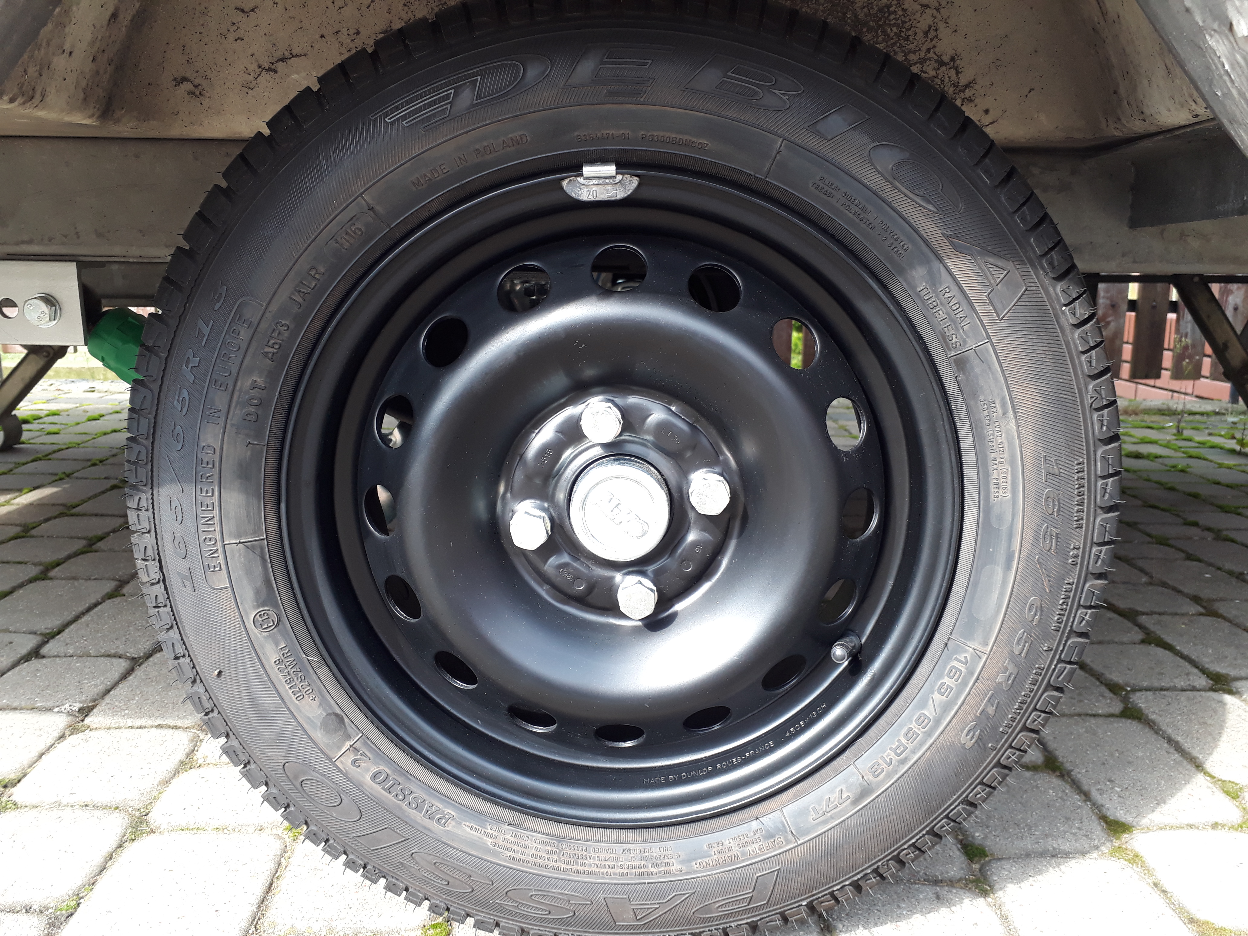 Jako, że posiadam dodatkowy komplet kół od samochodu na felgach stalowych o rozmiarze 185/65R15 ET40, zacząłem się zastanawiać czy nie wykorzystać ich do przyczepy.