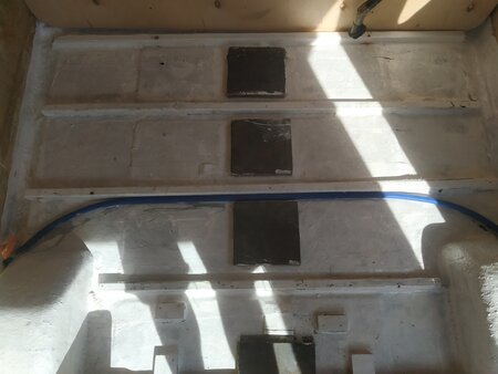 Dziś wreszcie skorupka przytwierdzona została do ramy przez nowiutką podłogę. Sklejka oklejona ekranami i doklejona na łączeniach srebrną metaliczną taśmą została przykręcona najpierw do ramy a potem do legarów nierdzewkami co jakieś 40cm. Pierwsze wrażenie co do ocieplenia podłogi to wydaje się być...