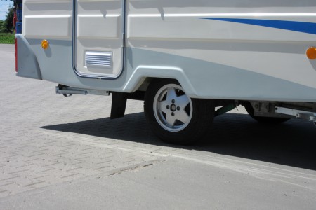 Przyczepka przed sezonem otrzymała również pakiet nowych "plastików" tj. uchwyty manewrowe, zaślepki, kratki wentylacyjne itp. Na nowo ocynkowane zostało koło manewrowe, podpory oraz dźwignia hamulca postojowego.